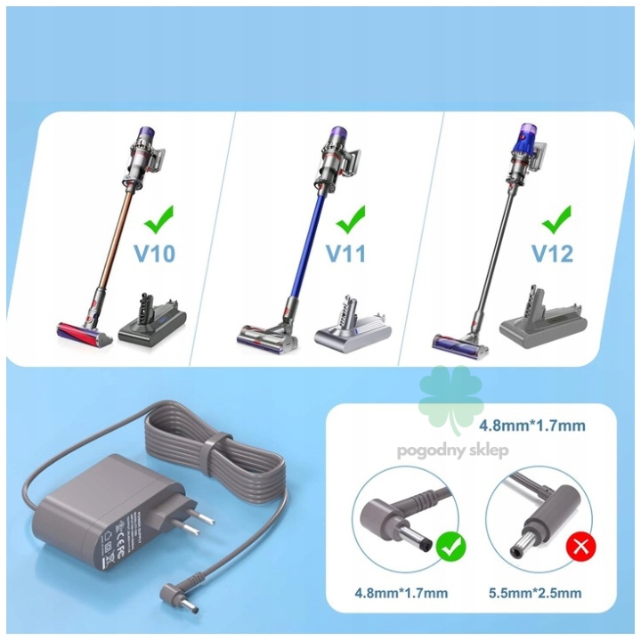 Идеальная посадка: Разъем 4,8x1,7 мм идеально подходит к зарядному порту моделей Dyson V10, V11, V12, V15.