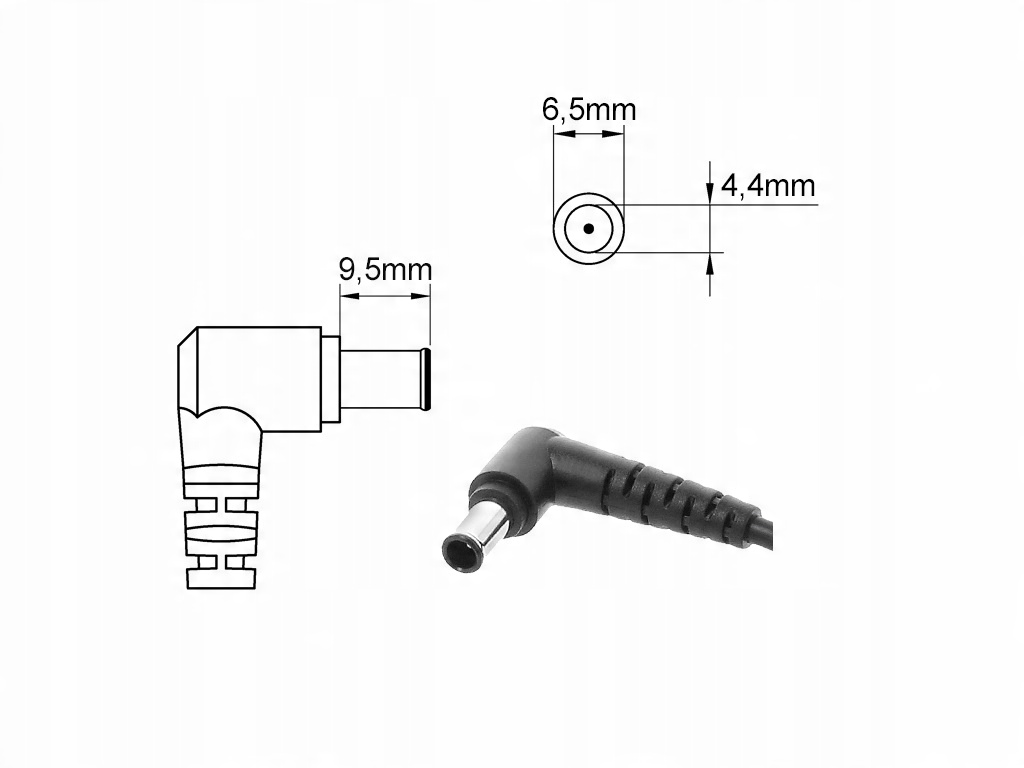 Вилка: Внешний диаметр 6,5 мм, внутренний диаметр 4,4 мм, длина 9,5 мм