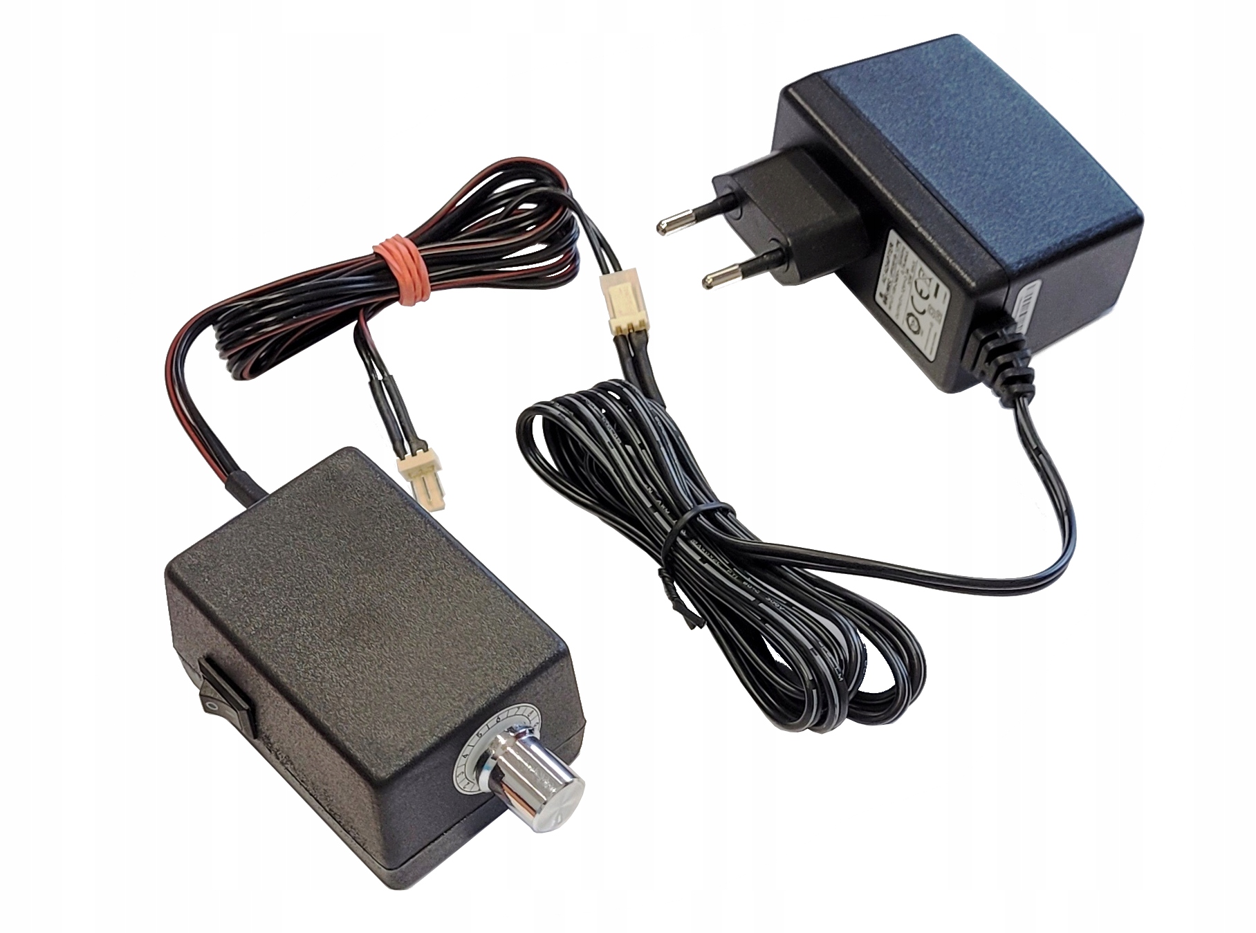 Блок питания с 3-контактной вилкой для компьютерных вентиляторов для прямого подключения к сети 230 В. Он оснащен регулятором скорости, который позволяет установить любую скорость вращения вентилятора. В регуляторе установлен переключатель.