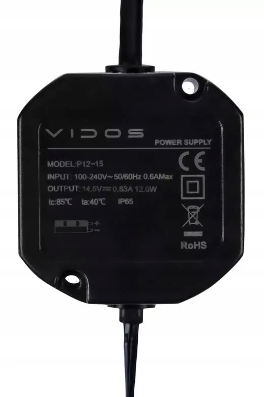 Vidos P12/15 — это импульсный источник питания, предназначенный для установки в самую популярную коробку диаметром 60 мм.