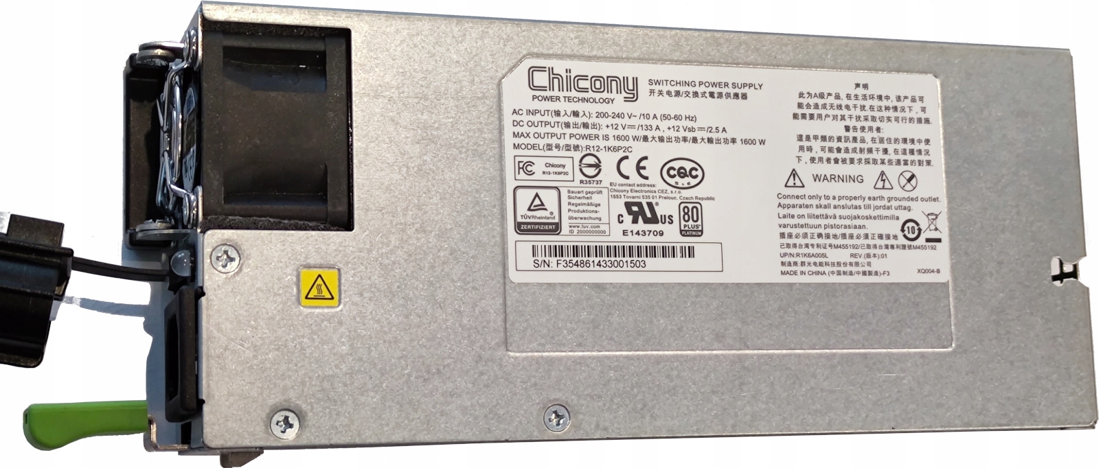 Блок питания Fujitsu Primergy R12-1K6P2C 1600 Вт S26113-F5295-E160, эффективность 100 %.