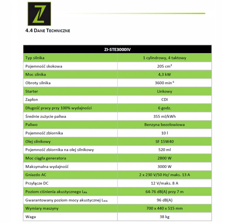 Постоянная мощность генератора: 2800 Вт