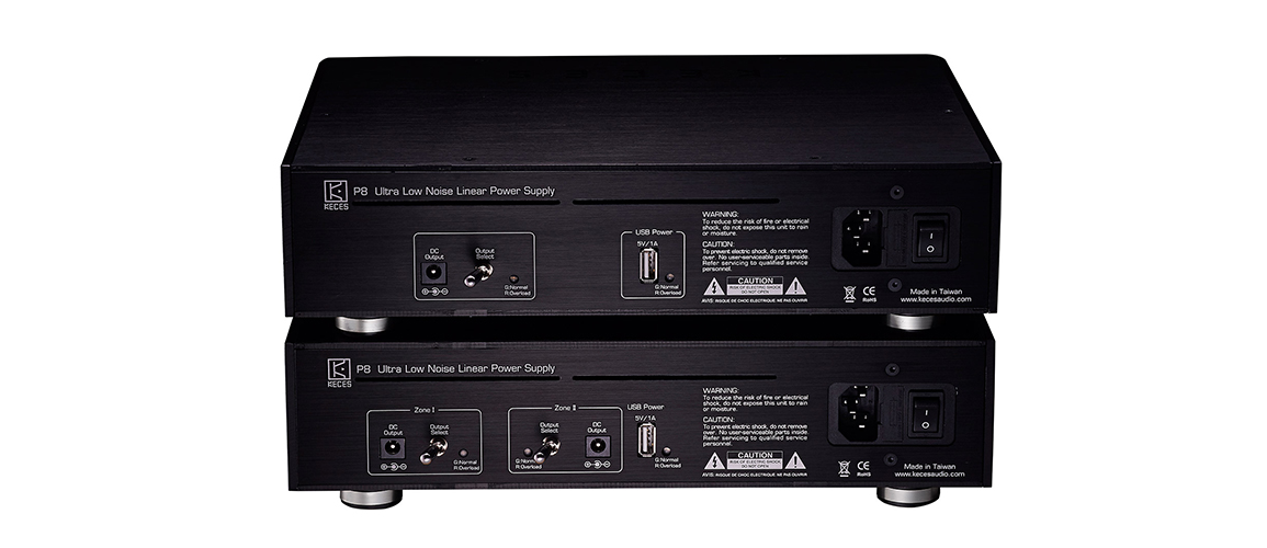 Блок питания Keces P8 предназначен для использования в аудиосистемы, состоящие из небольших компонентов, например аудиосистемы настольных компьютеров. Благодаря двум выходам с переменным напряжением (от 5 до 24 В) он может питать усилители для наушников, цифро-аналоговые преобразователи и даже проигрыватели виниловых пластинок. Дополнительное оборудование включает в себя USB-розетку с питанием 5 В, 1 А, идеально подходящую для питания USB-преобразователей и улучшения качества их звука.