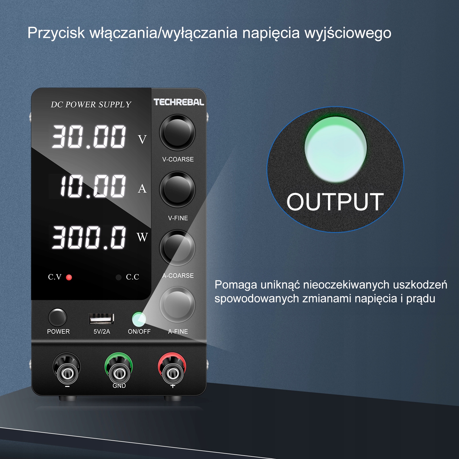 Сервисный блок питания Techrebal – незаменимое устройство в каждом сервисе электроники, идеально подходящее для проведения ремонта и питания различных устройств. Он характеризуется точно регулируемым выходным напряжением в диапазоне от 0 до 60В и максимальным выходом по току 5А. Универсальность делает его идеальным не только для профессионального обслуживания, но и в домашней мастерской или при выполнении передовых научных работ. Это незаменимый элемент оборудования, позволяющий эффективно и точно регулировать мощность в соответствии с потребностями питаемых устройств. Он имеет кнопку, которая включает/выключает выходное напряжение без необходимости выключать весь источник питания.