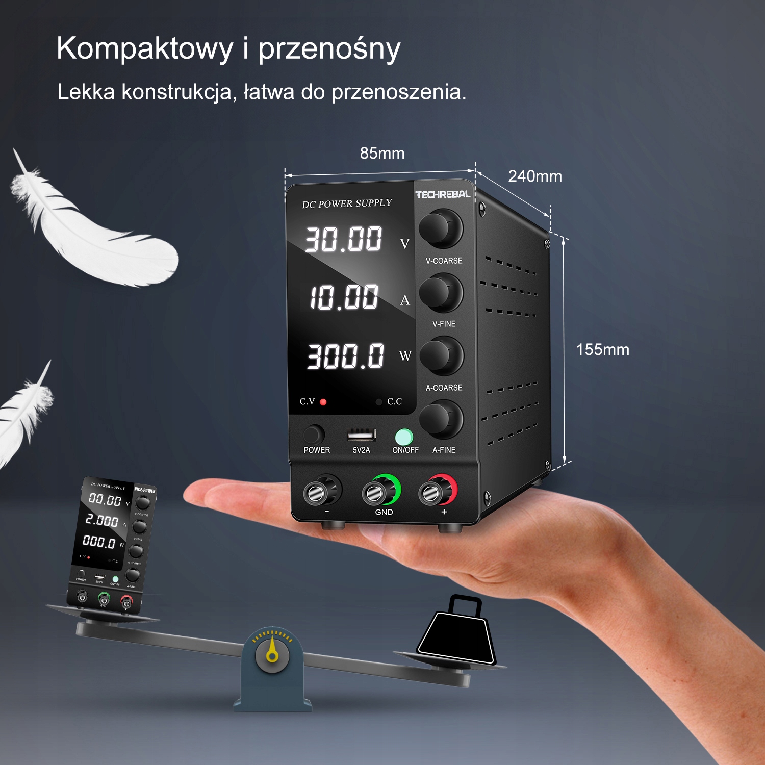 Techrebal SPS-C605 — стабилизированный лабораторный источник питания с плавной регулировкой напряжения от 0 до 60 В и тока от 0 до 5 А. Его основными преимуществами являются высокая точность и четкий ЖК-дисплей. Блок питания охлаждается тихим вентилятором с регулируемой температурой.