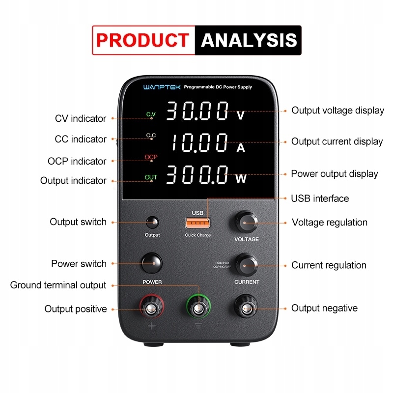 - Режим: постоянный источник питания (CV), постоянный ток (CC).