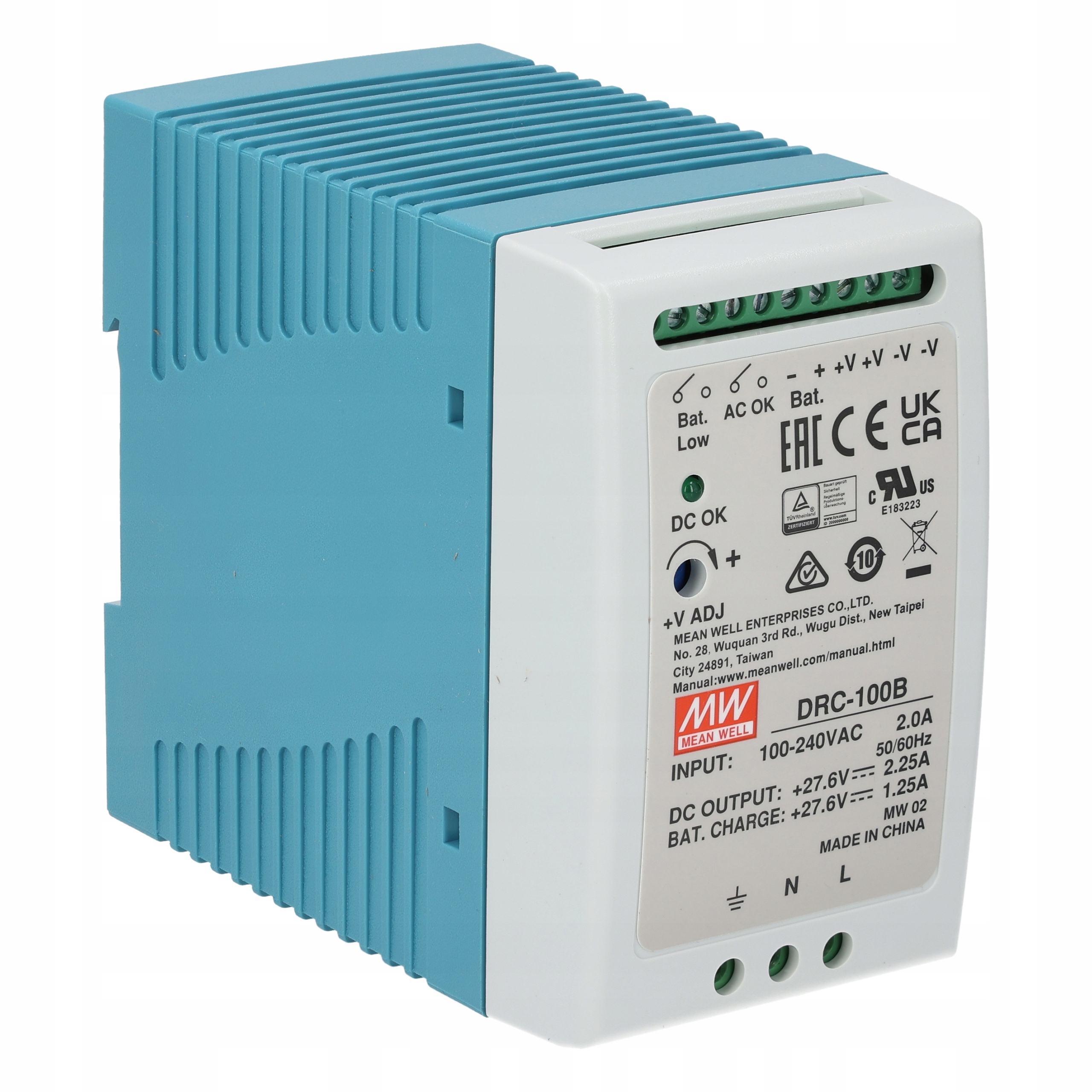 Источник питания на DIN-рейку с возможностью зарядки | MEAN WELL DRC-100B