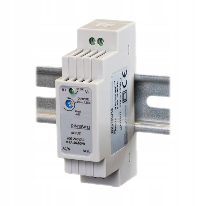 Блок питания DIN 12В/1,25А, пластик DIN15W12