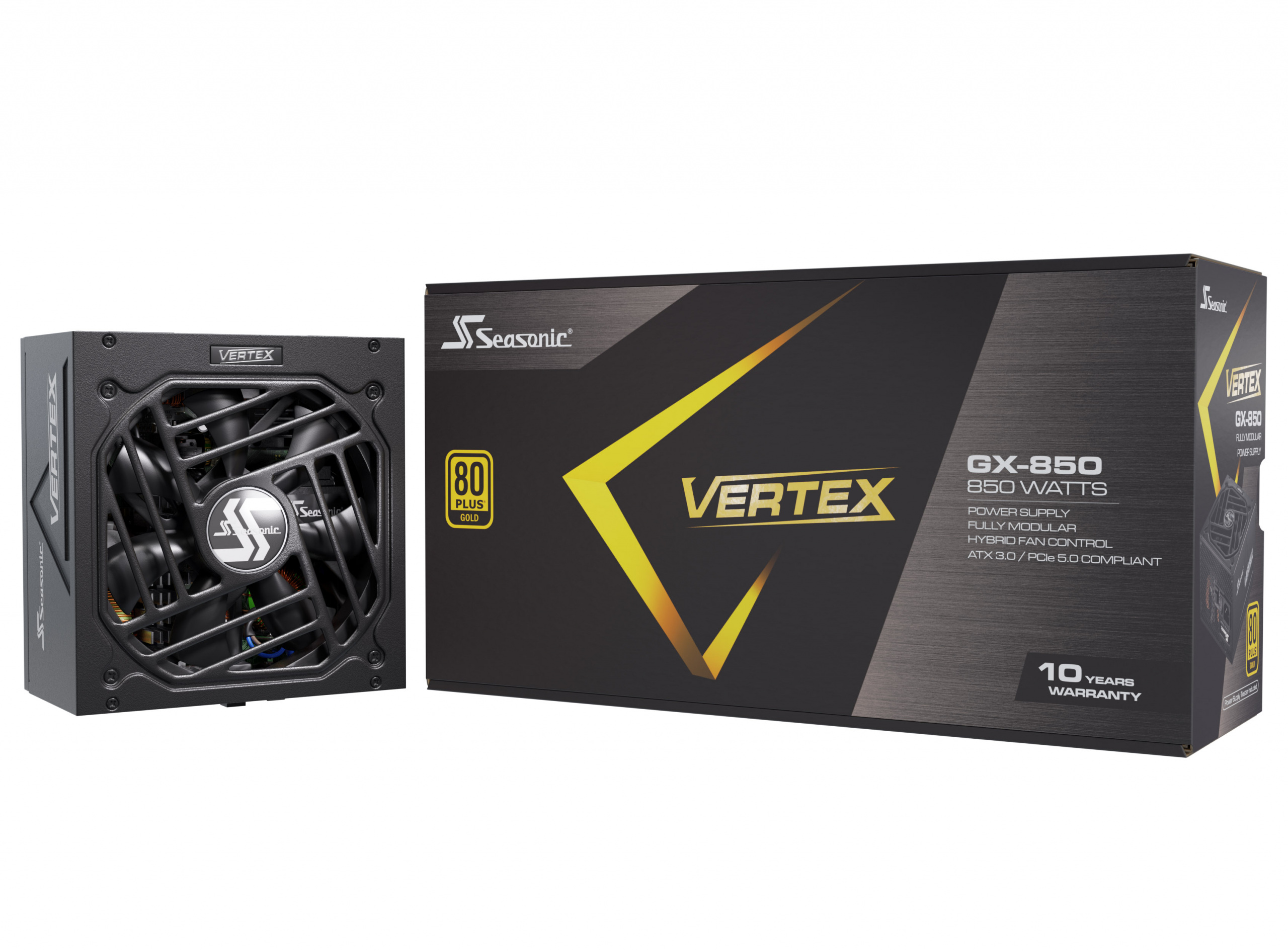 Seasonic Vertex GX 850 Вт — представитель новейшего семейства компьютерных блоков питания, совместимых со спецификациями ATX 3.0 и PCIe 5.0. Он был разработан и изготовлен специально для питания новых компонентов ПК, требующих соответствия ранее упомянутым спецификациям. В комплект входит качественный разъем питания для новых видеокарт под названием 12VHPWR. Устройство соответствует требованиям эффективности в соответствии со стандартом 80Plus Gold.