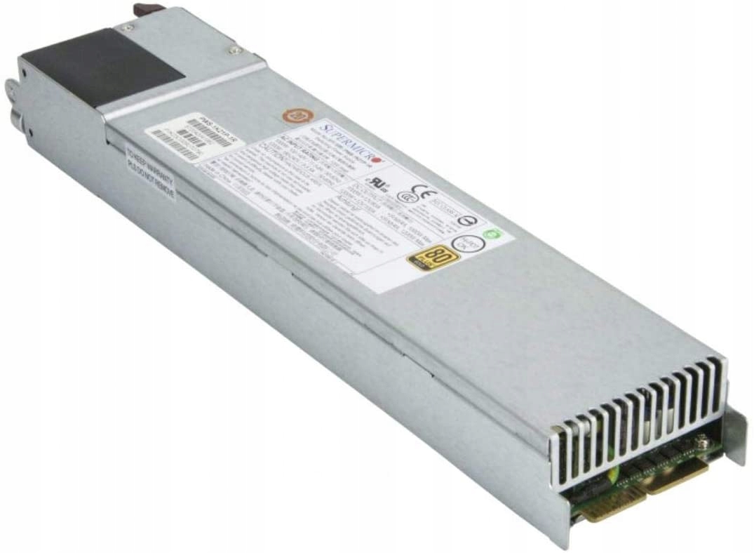 - Supermicro PWS-1K21P-1R — это блок питания 80 Plus Gold, обеспечивающий выходную мощность 1200 Вт с КПД 92 %. Наслаждайтесь простотой активной коррекции коэффициента мощности (PFC) и автоматически корректируйте входное напряжение переменного тока для всего диапазона напряжений. Имеет краевой разъем для карты для подключения к объединительной плате совместимых систем Supermicro 1U.
