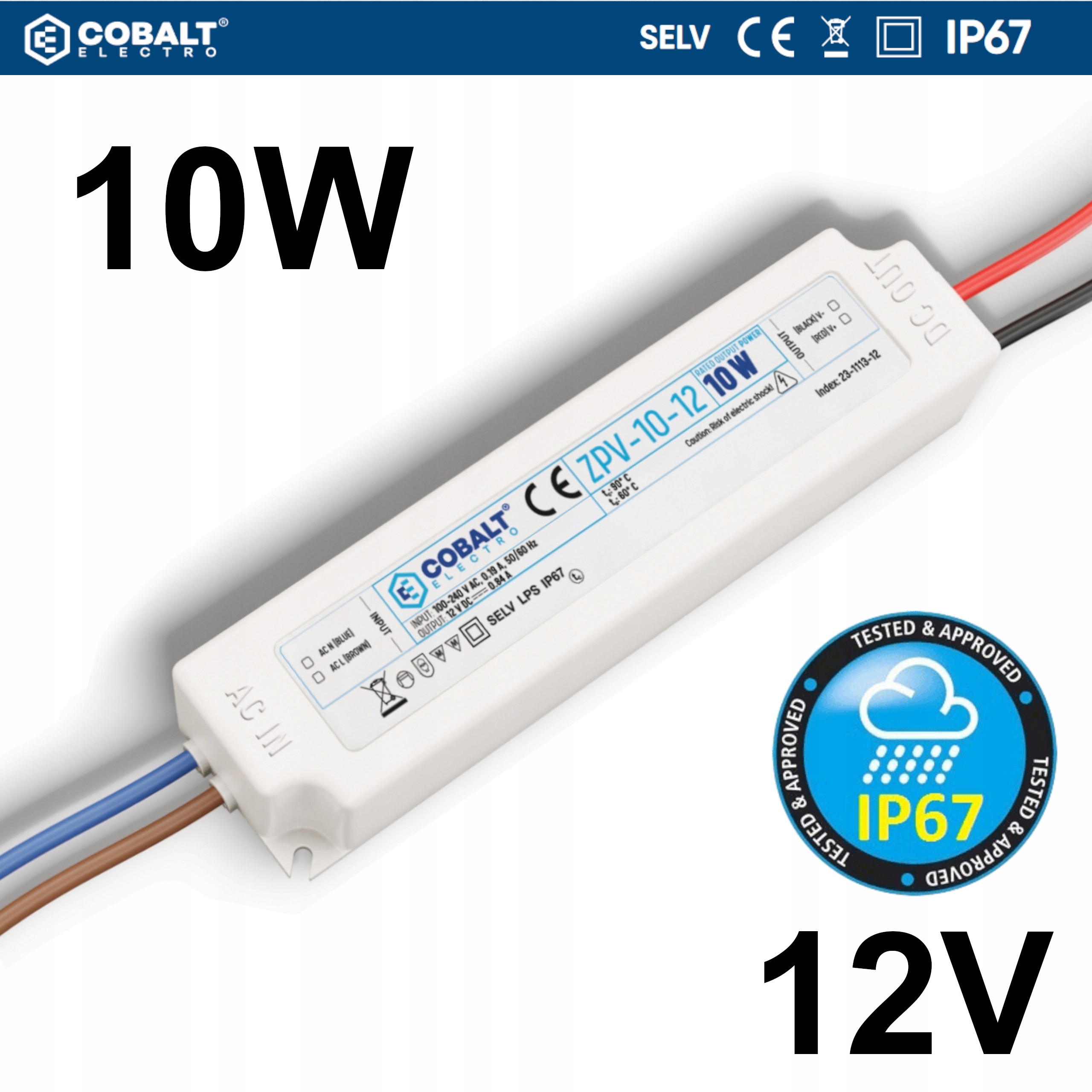 Водонепроницаемый герметичный блок питания для светодиодных лент IP67 для внутреннего и наружного использования, Cobalt Electro ZPV 10 Вт 12 В