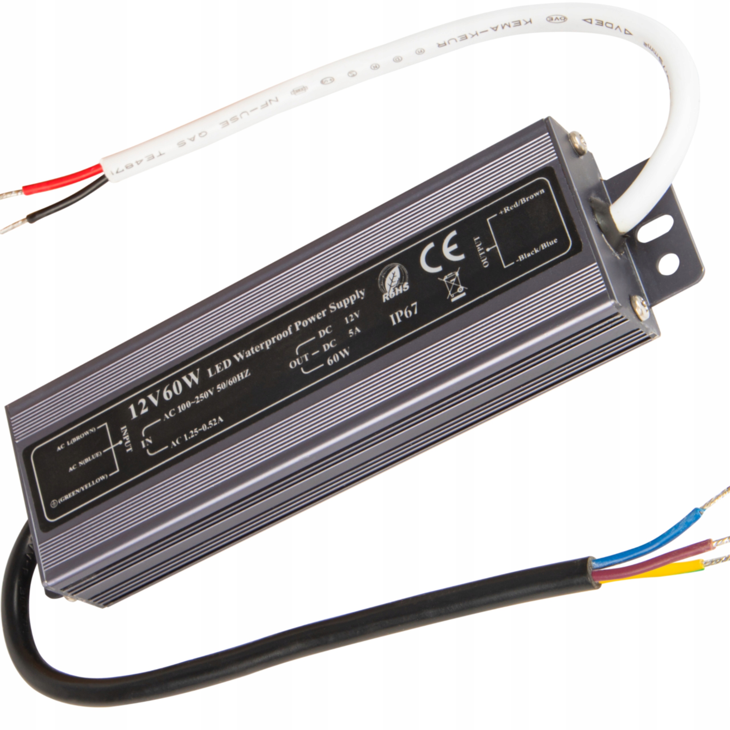 Водонепроницаемый блок питания 12В 5А 60Вт IP67 ДЛЯ УЛЬТРАТОНКИХ СВЕТОДИОДНЫХ ЛЕНТ