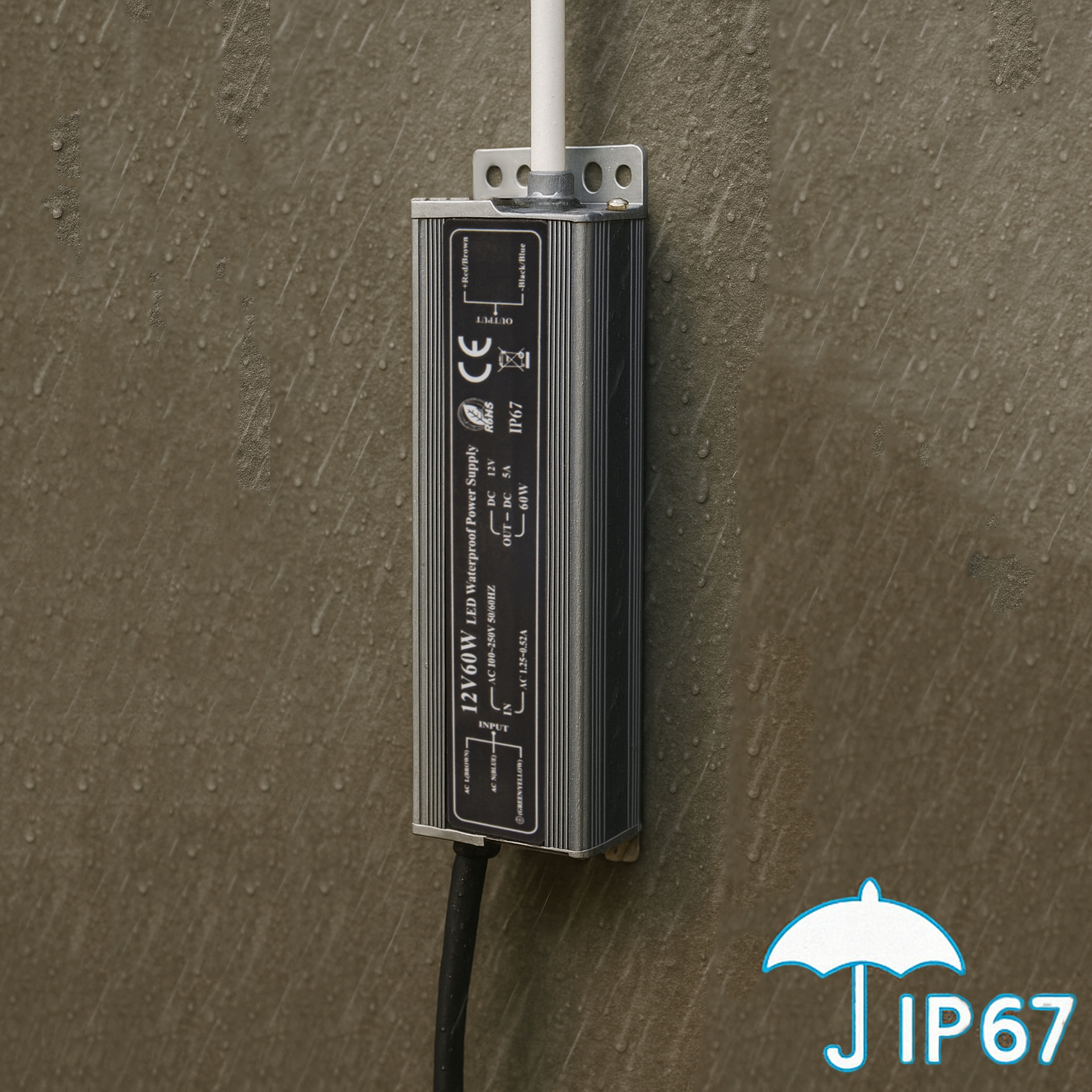 ✅ Класс устойчивости IP67 позволяет устанавливать блок питания где угодно, ему не страшны неблагоприятные погодные условия, такие как дождь, буря или ветер.