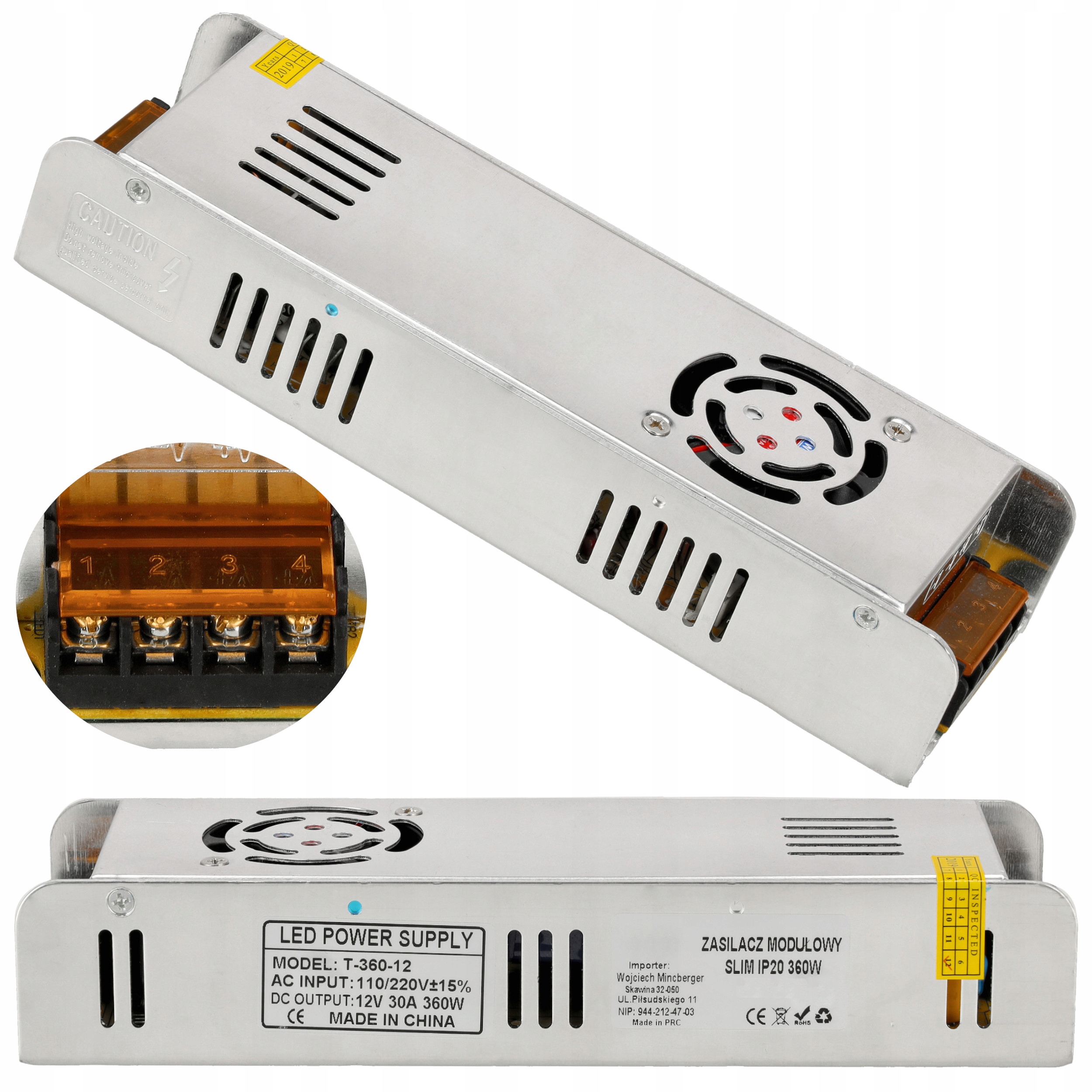 Блок питания, трансформатор 12 В, 360 Вт, 30 А, монтаж SLIM для светодиодной ленты