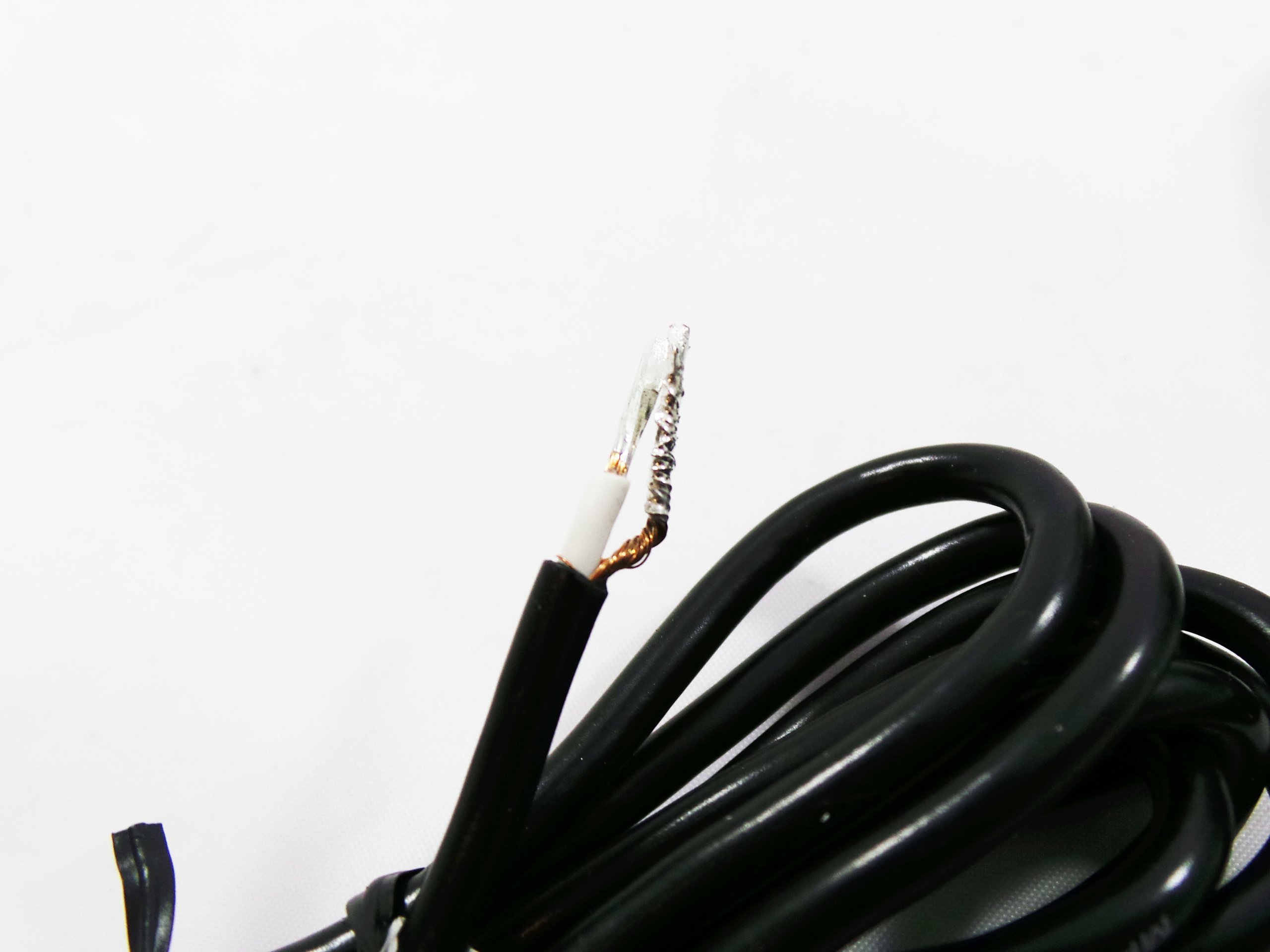 - С концов кабеля снята изоляция (1 см) и они покрыты жестью.
