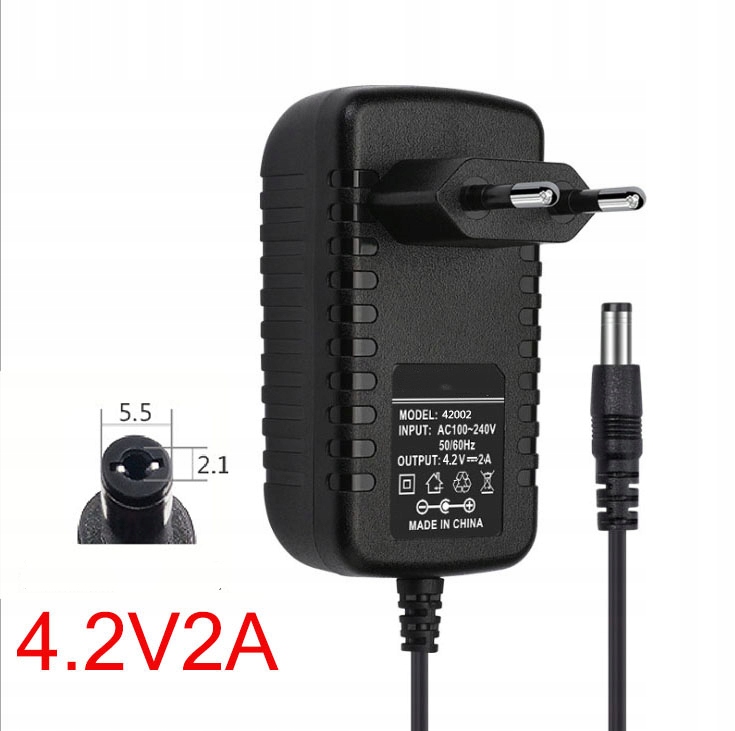 БЛОК ПИТАНИЯ ЗАРЯДНОЕ УСТРОЙСТВО ДЛЯ АДАПТЕРА 4,2В 2А DC 5,5*2,1ММ