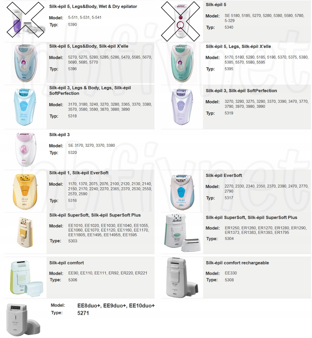 Не подходит к следующим эпиляторам Silk-épil 5 серии: