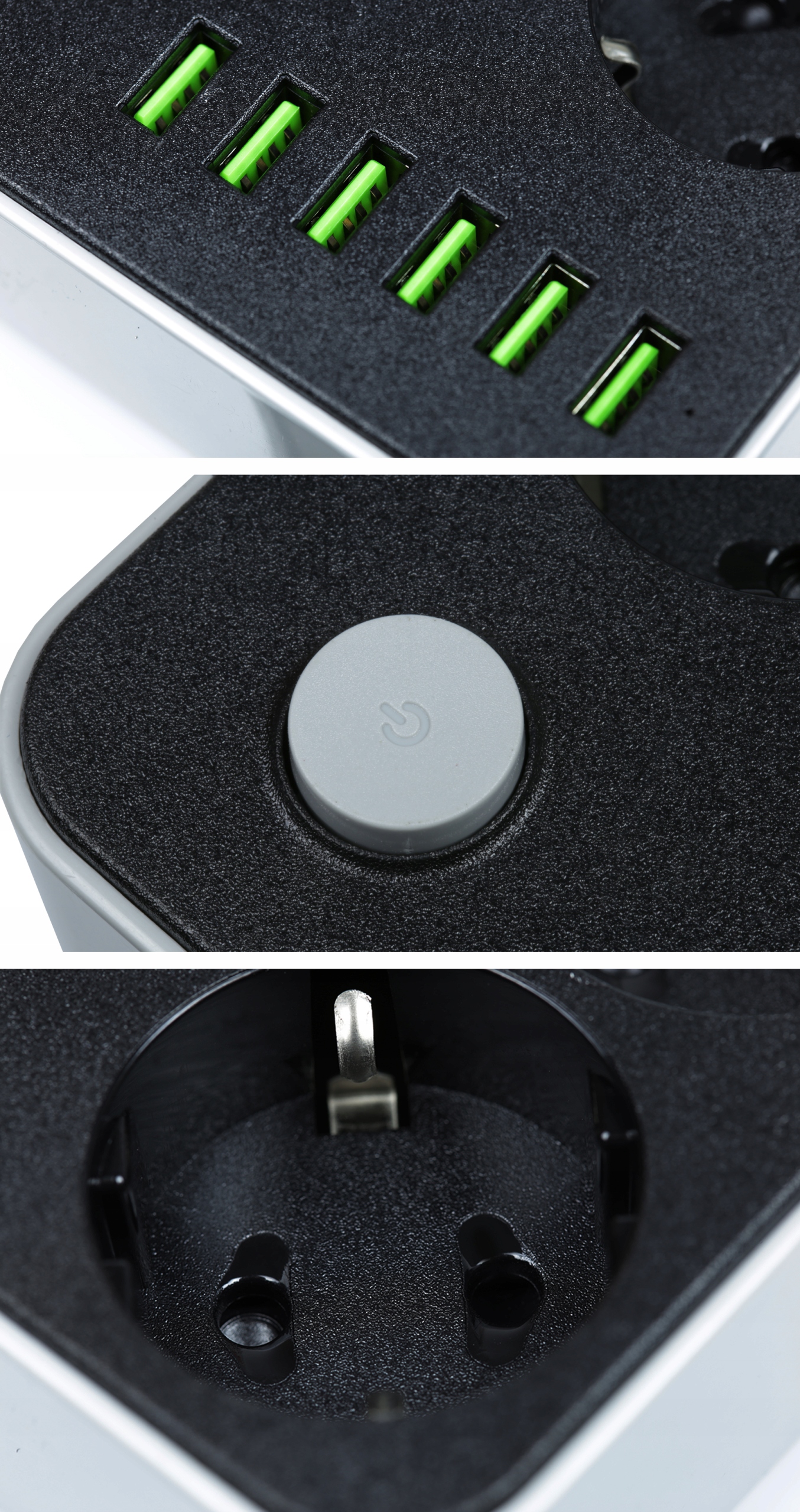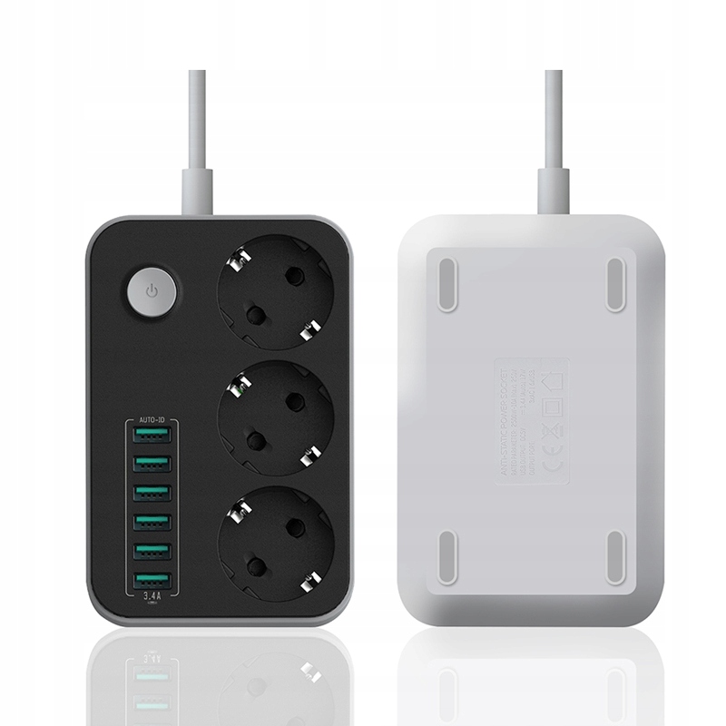 РАСПРЕДЕЛИТЕЛЬНЫЙ БЛОК ПИТАНИЯ 3 РОЗЕТКИ + 6 USB УДЛИНИТЕЛЬ 2М