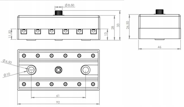 Коробка предохранителей, шестикратная, 12/24 В, кабельные соединения с винтом Kramp