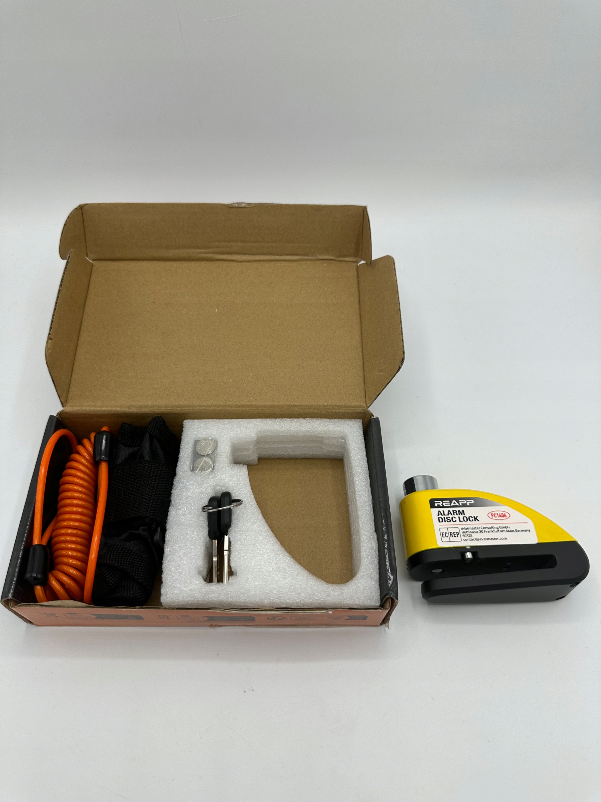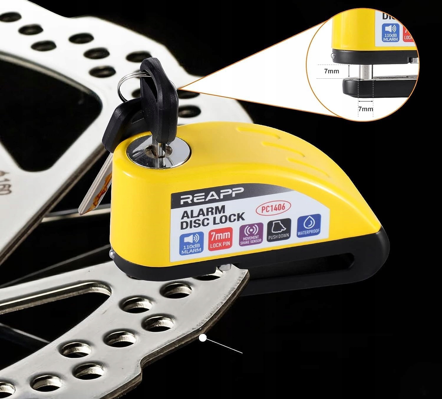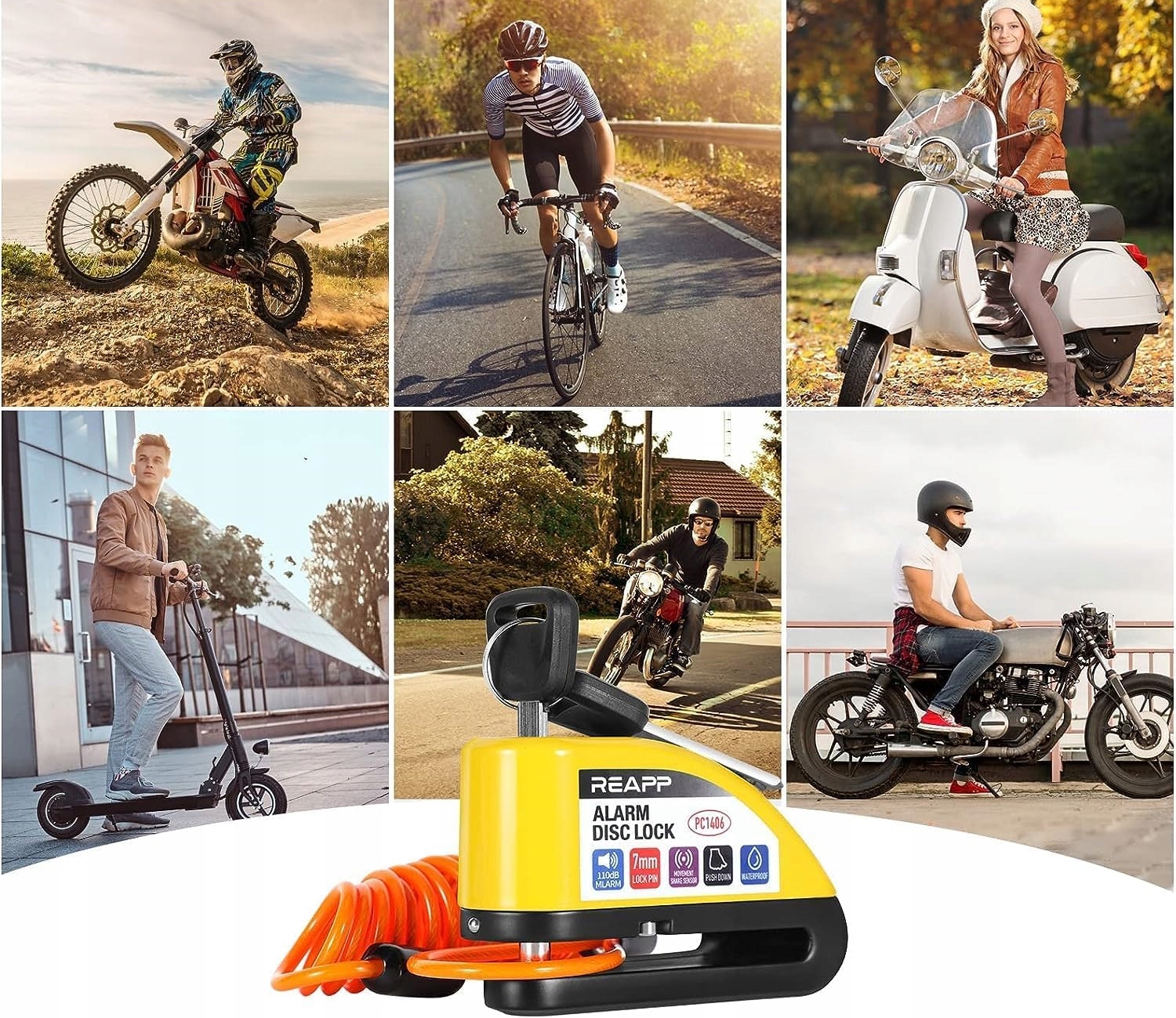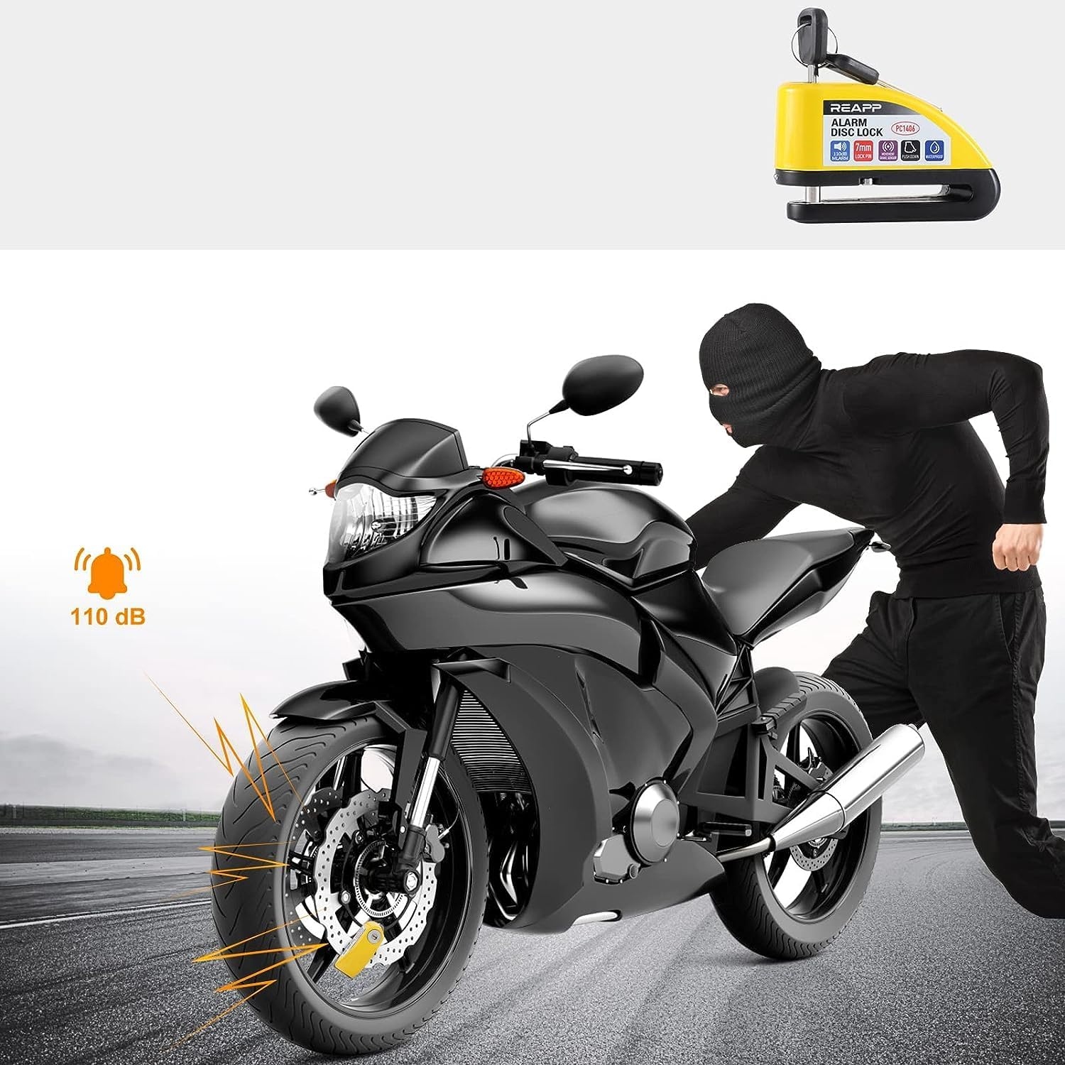 Кошмар вора: Замок диска сигнализации REAPP необходим для защиты вашего мотоцикла и велосипеда внутри и снаружи от кражи. Встроенный чувствительный датчик издает звук мощностью 110 дБ при обнаружении вибрации или движения, чтобы отпугнуть воров, пытающихся переместить автомобиль или открыть замок.