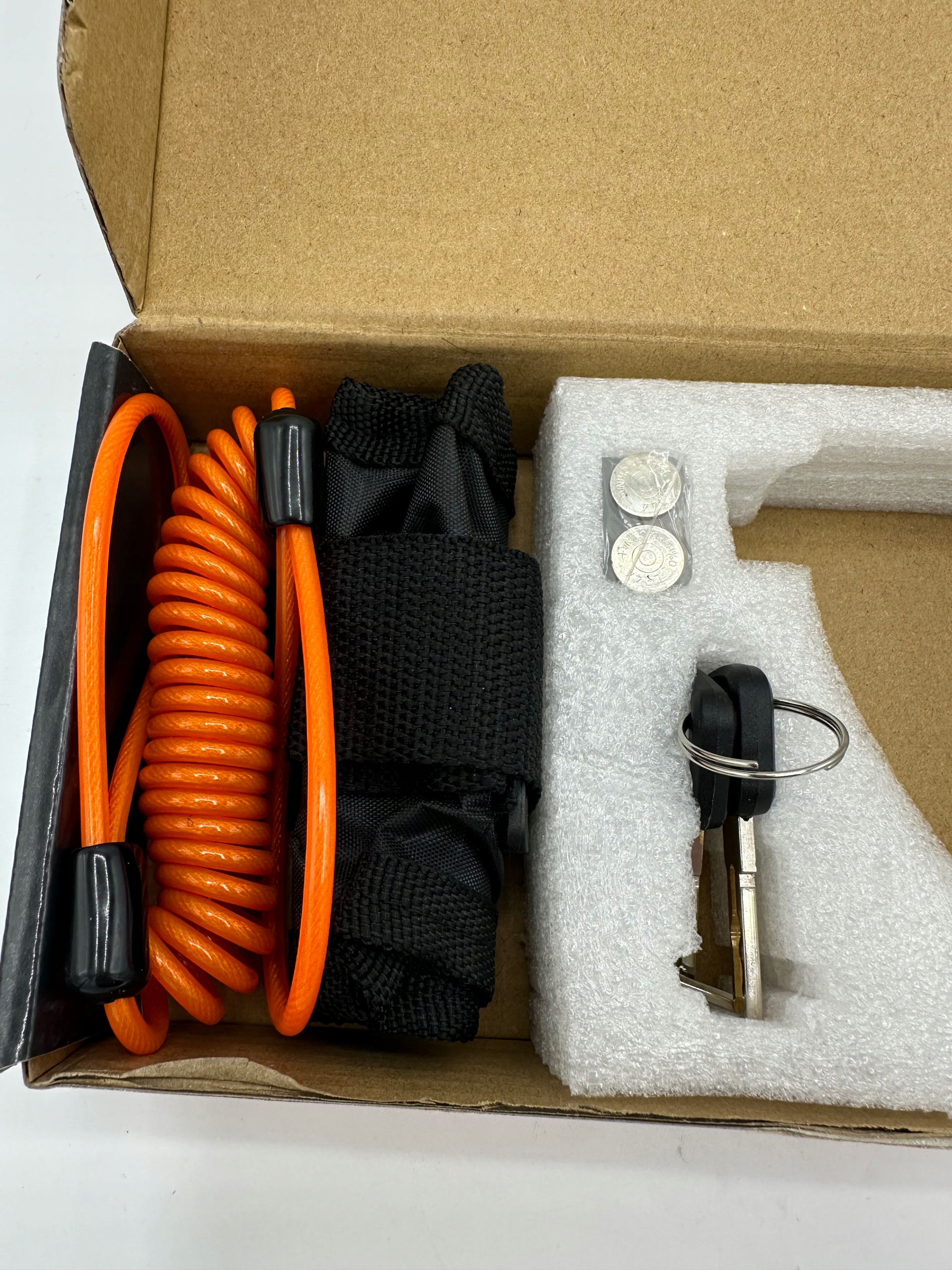 Простота в использовании: Этот замок дискового тормоза можно заблокировать, просто нажав на него. Через 3 секунды вы услышите звуковой сигнал и перейдете в режим будильника. В комплект входит веревка-напоминание о необходимости снять замок перед поездкой.