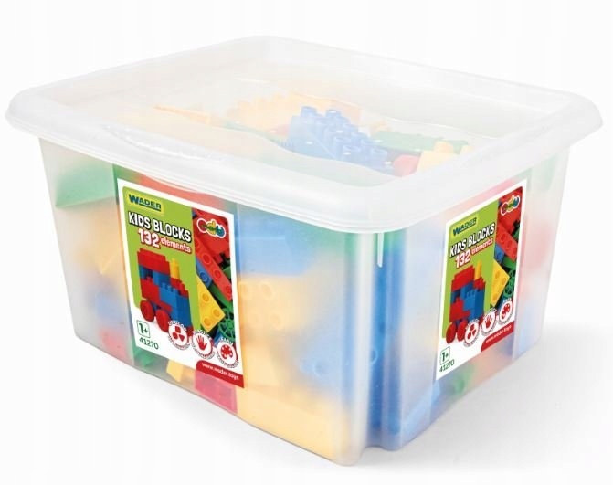 блоки блоков вадера представляют собой набор из 132 различных, красочных элементов, адаптированных к маленьким рукам. Легкость соединения отдельных деталей друг с другом делает игрушку идеальной для самых молодых детей. Целое упаковано в удобный пластиковый контейнер, который поможет организовать игрушки после игры.