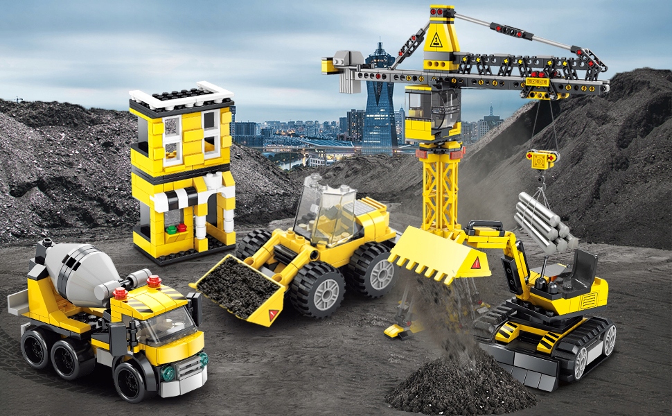БЛОКИ ЕКСКАВАТОР КРАН ВАЗКА ФІГУРКА 7в1 НАБІР БУДІВЕЛЬНА ТЕХНІКА 854 шт.