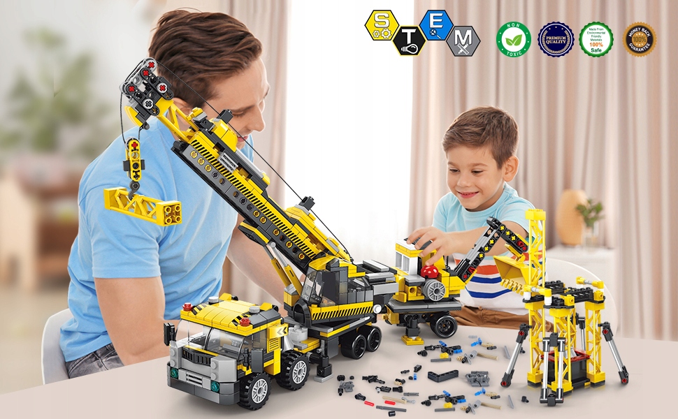 - ⭐Этот простой в сборке набор технических транспортных средств содержит 854 кубика, которые можно собрать в 2 набора, в общей сложности состоящих из 7 моделей, включая кран, подъемник, экскаватор, самосвал, бульдозер и дом. После сборки модели оживают благодаря гибким вращающимся деталям, которые пробуждают воображение вашего ребенка, позволяя ему часами собирать и играть.