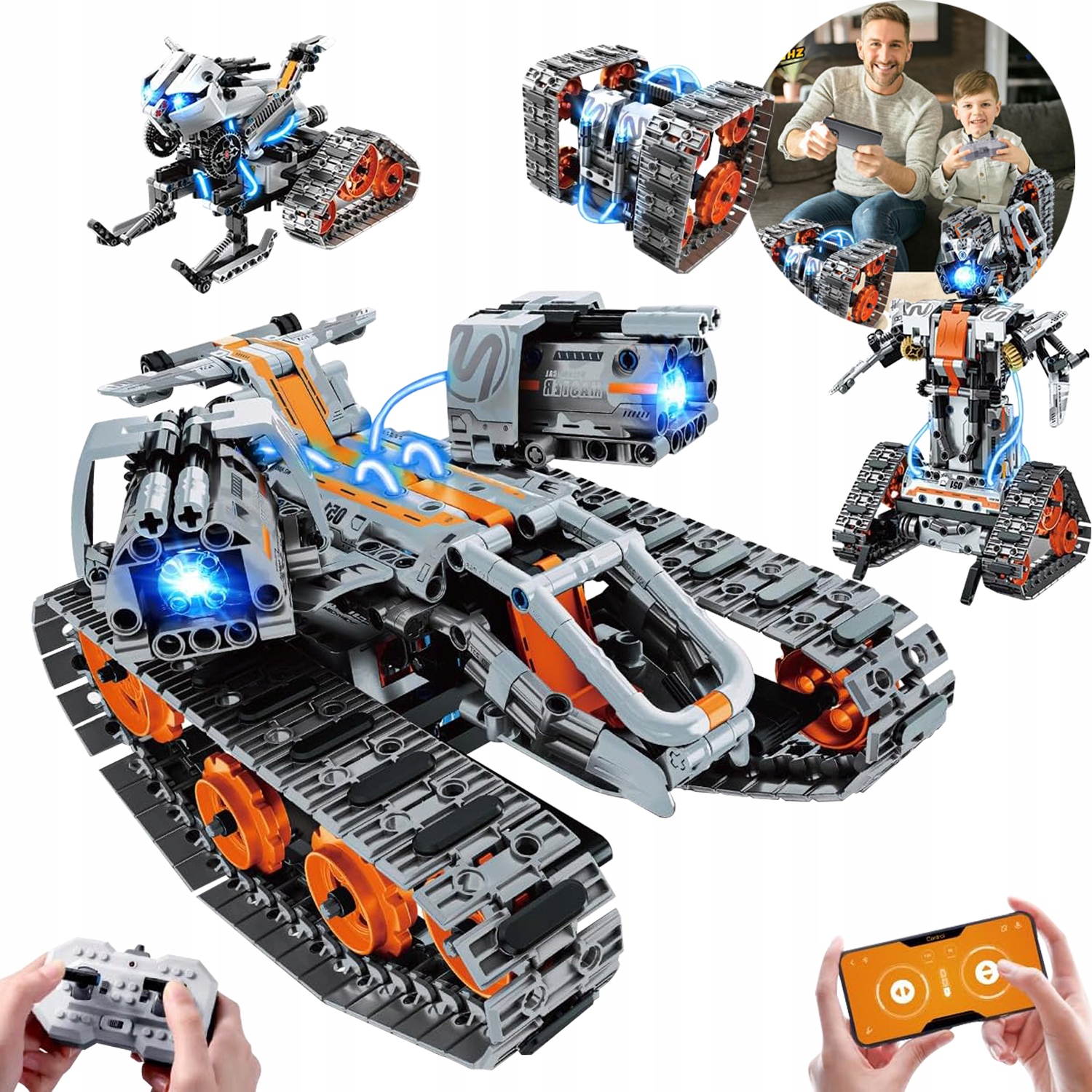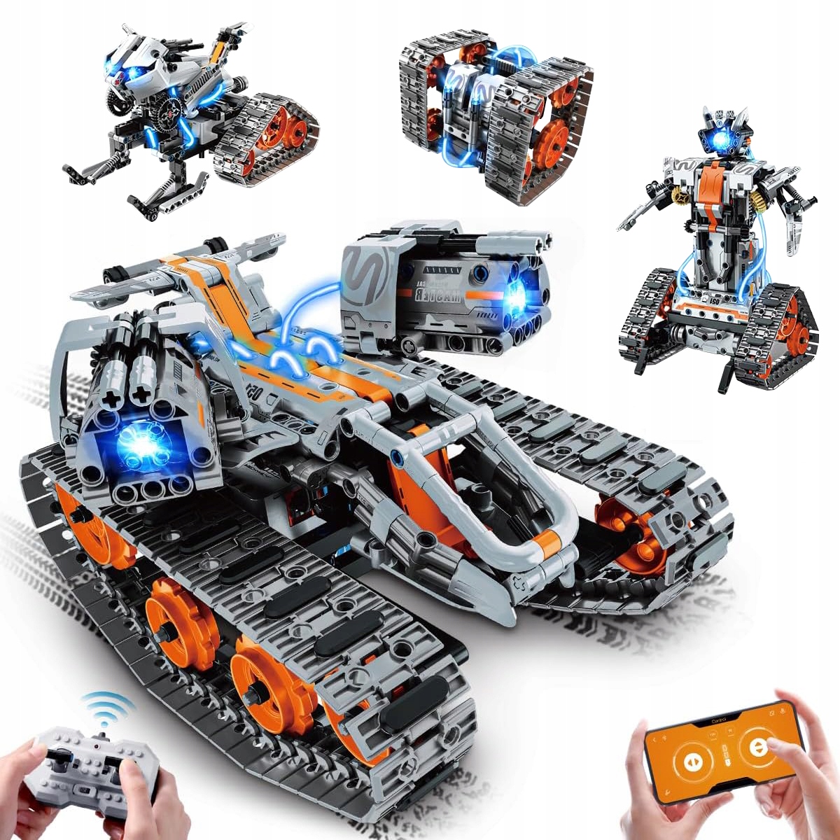 iM.Master 8051 4 в 1 Техническая строительная игрушка с дистанционным управлением, светодиодной подсветкой, приложением и пультом дистанционного управления, конструктор-робот-цистерна, 724 детали, подарок для детей 6–12 лет и старше, мальчиков и девочек