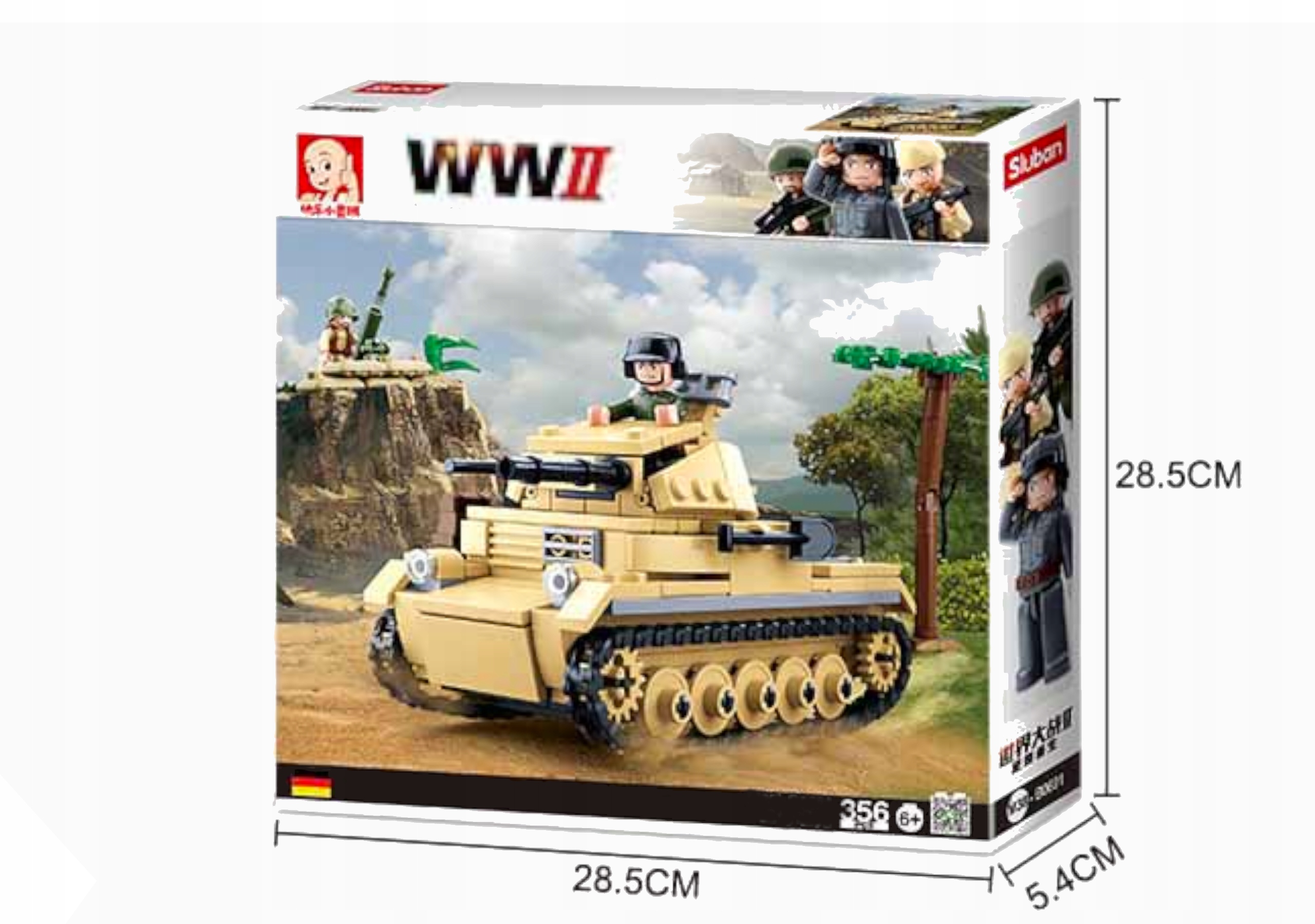 Набор содержит 356 элементов, включая тщательно воспроизводимый резервуар, статуэтки солдат, раствор и передние пейзажи. Идеально подходит для детей старше 6 лет и всех поклонников исторических сражений и военной тактики!