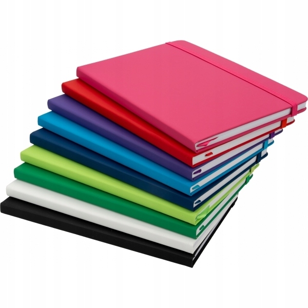 Блокнот формата А5 из серии KIEL, имеет гладкую ПУ обложку, 160 пустых страниц (80 листов) (вес: 70 г/м²) и цветную ленточную закладку.