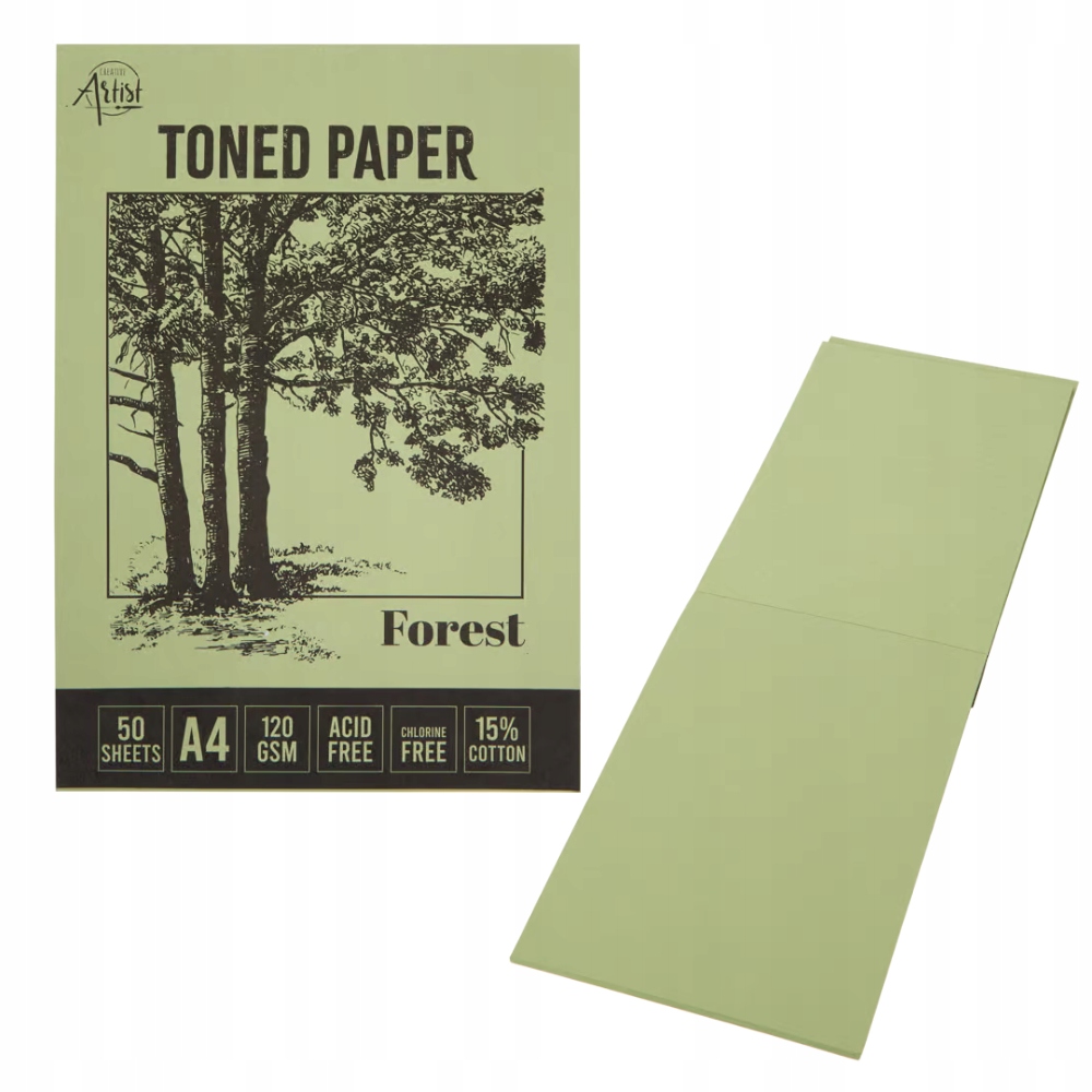 Тонированная бумага для альбома для рисования A4 120 GSM 15% ХЛОПОК 50 ЛИСТОВ ЗЕЛЕНЫЙ