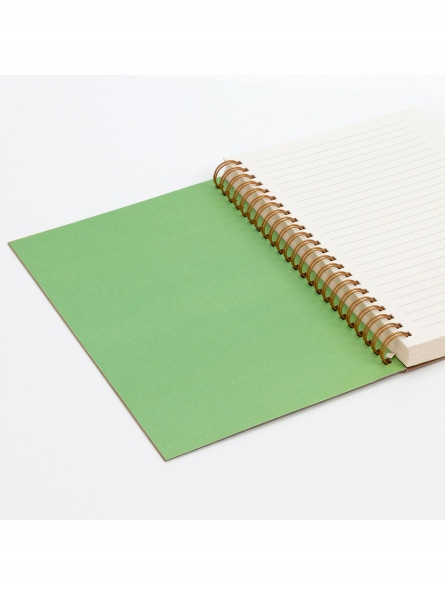 Блокнот на спирали на 192 страницы, обложка которого выполнена из переработанного картона плотностью 650 г и кремовой бумаги плотностью 70 г.