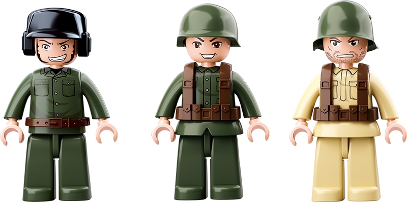 В комплект входят: 543 кубика, три фигурки танкистов с оборудованием, полноцветная инструкция.