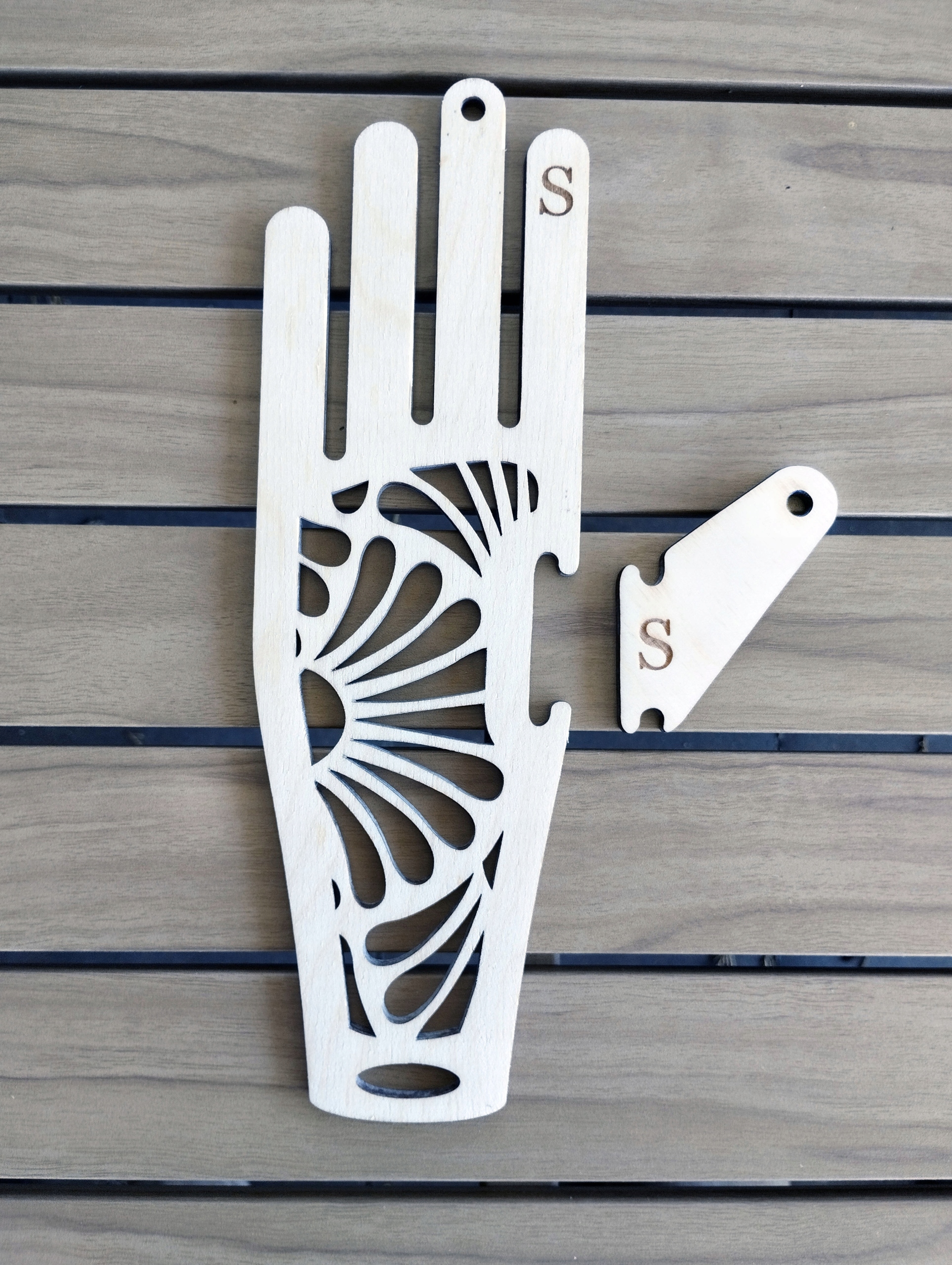 Блокатор перчаток S | узор гинко | Березовая фанера толщиной 5 мм