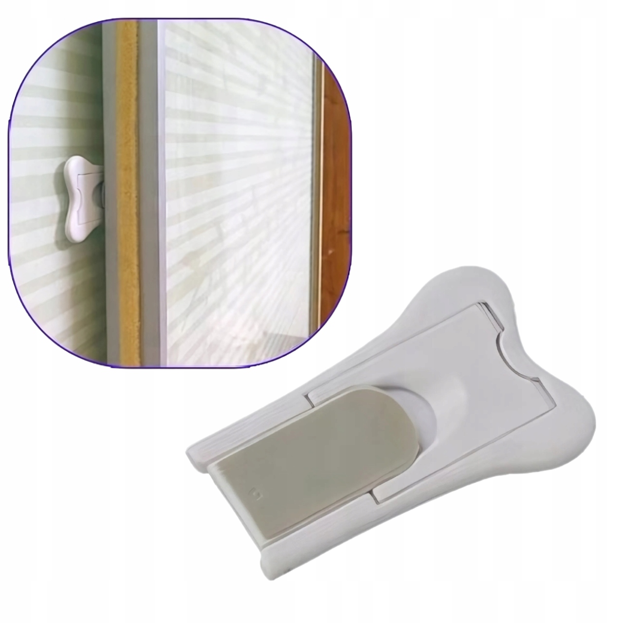 Блокировка для раздвижных дверей, которые защищают от детей. Они предотвращают открытие шкафов и шкафов, оснащенных раздвижными дверями, защищая от вытаскивания.