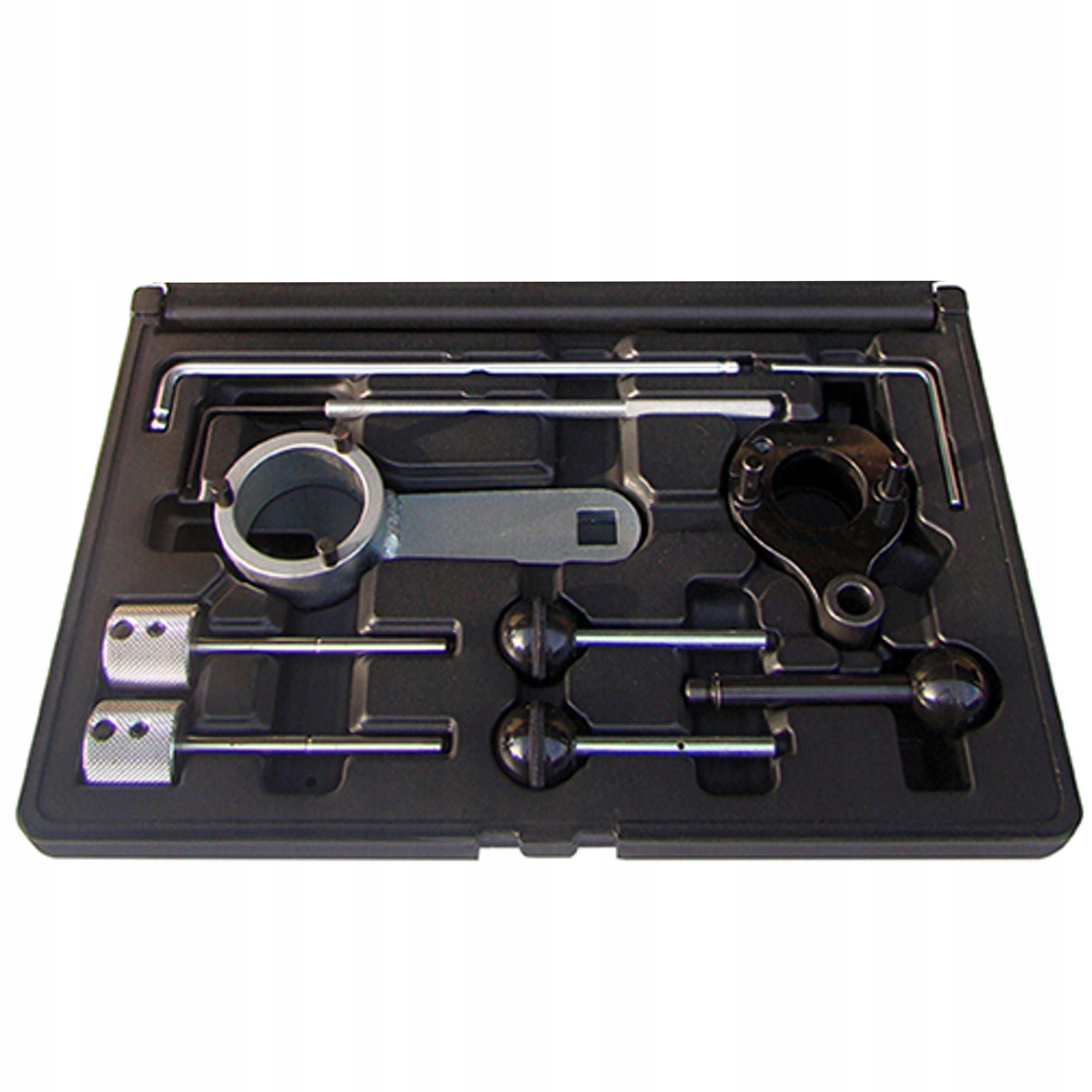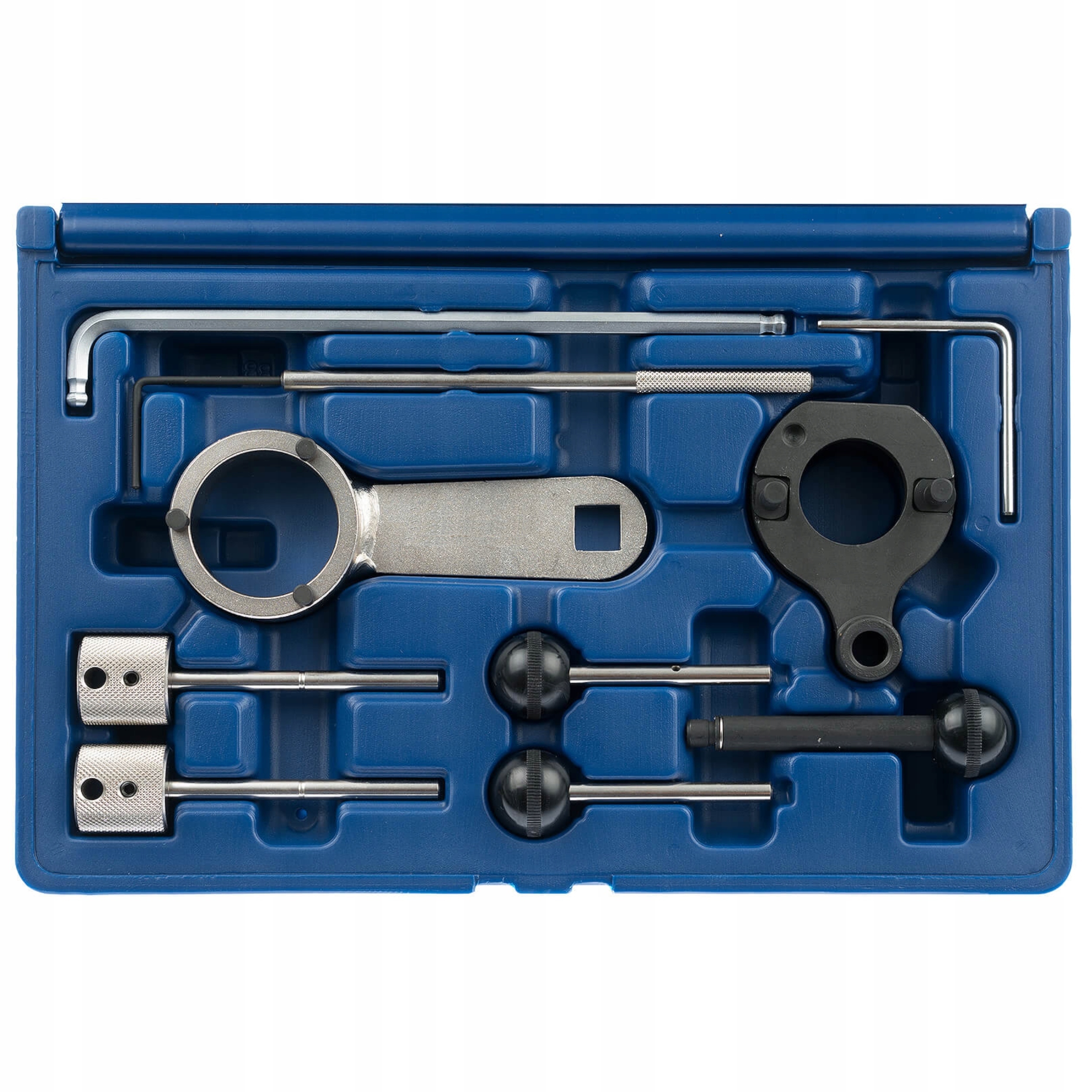 Комплект предназначен для фиксации коленчатого вала, шкива распределительного вала и топливного насоса в удобном положении для разборки и замены ремня или распределительного вала.