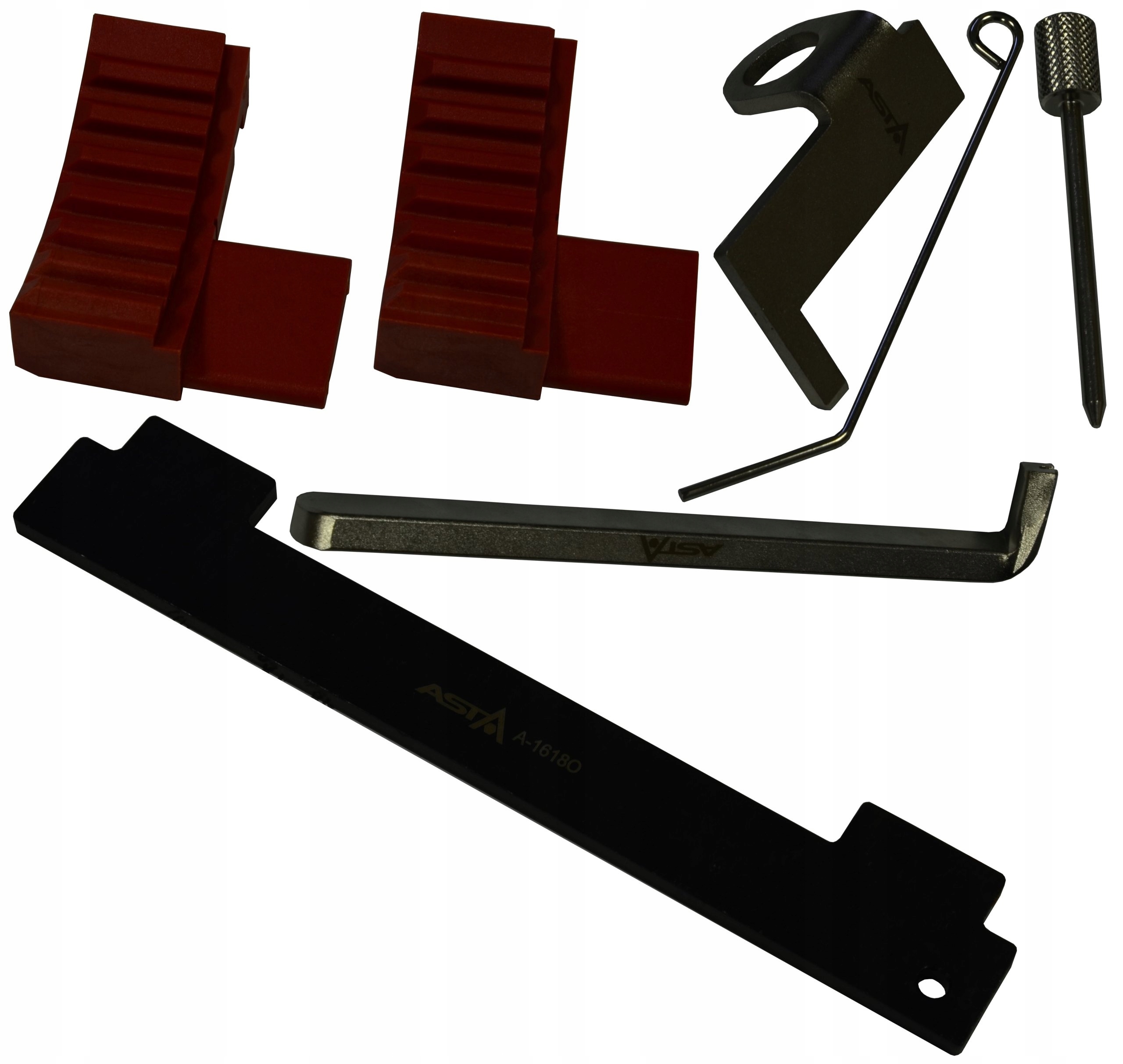 В комплект входят фиксатор распредвала, фиксатор маховика и штифт натяжителя ремня ГРМ.