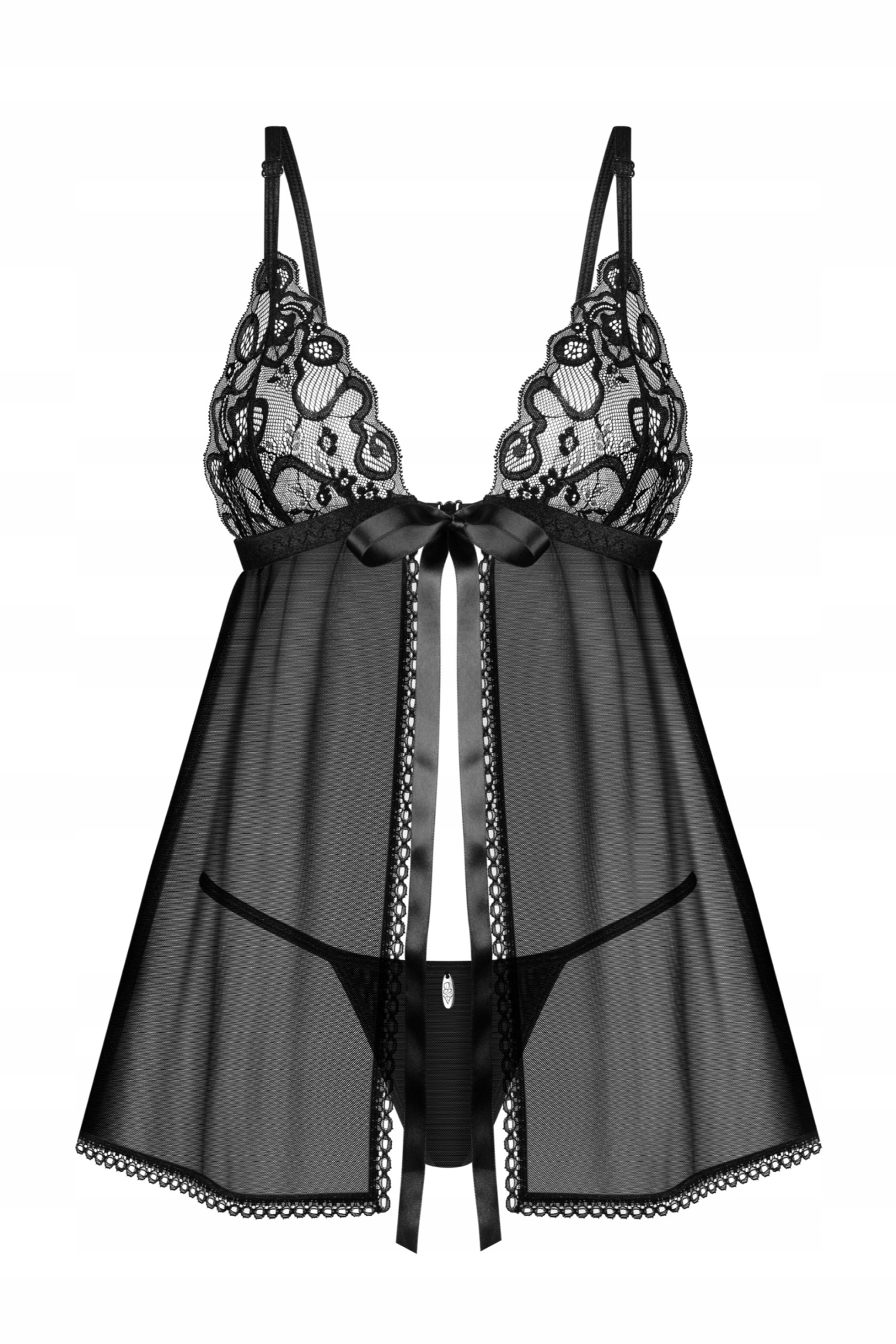 Подробности: - сорочка в стиле babydoll со стрингами - переднее крепление - регулируемые бретели - лента между чашками - бантик на спине - сочетание мягкого кружева и прозрачного материала - серебряный кулон с перстнем-печаткой Obsessive - 94 % полиамид, 6 % эластан. - разработан в ЕС - без никеля