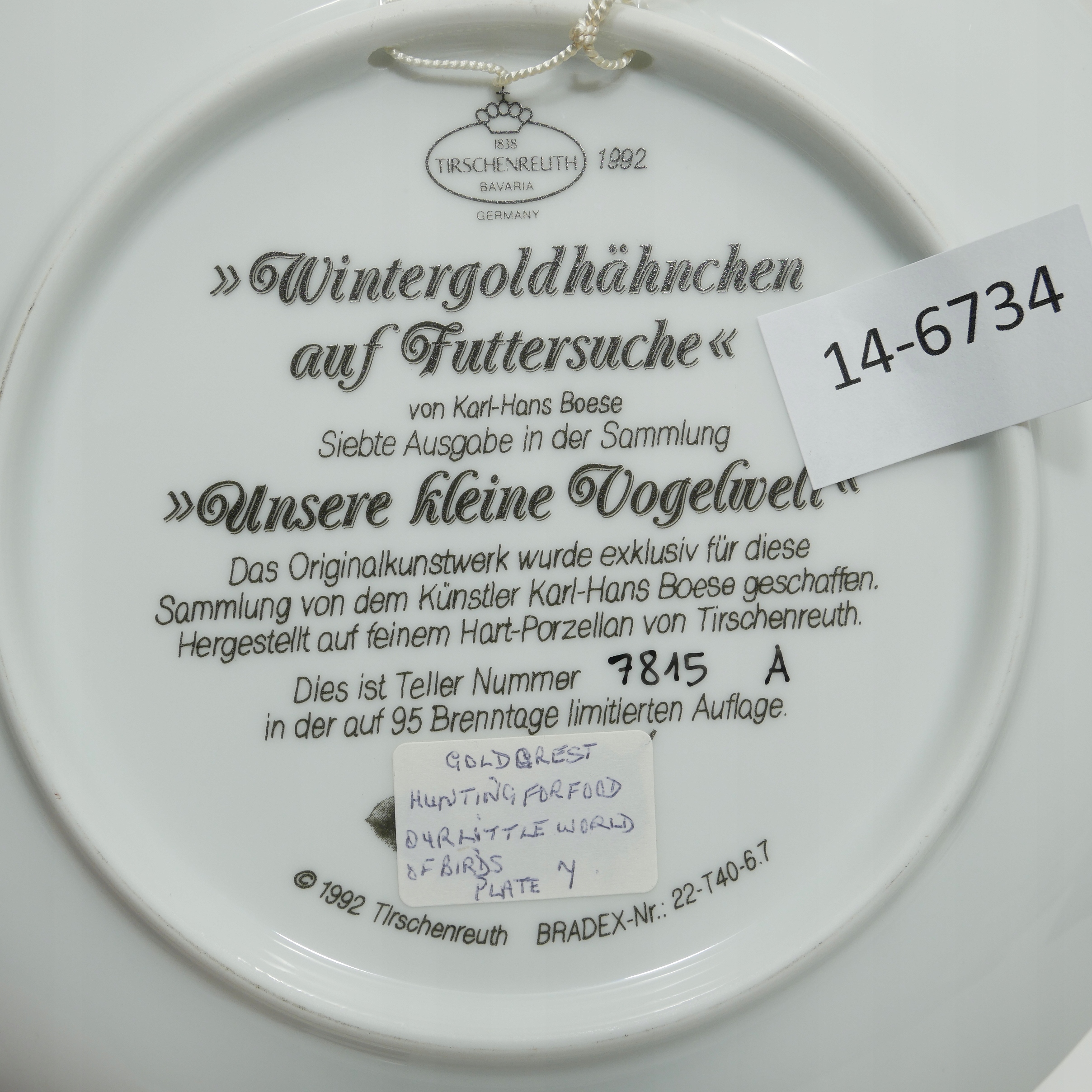 БЛОХОЙ РЫНОК - ТАРЕЛКА - ПТИЦЫ: МЫШЕЧНЫЙ КРОЛИК - ТИРШЕНРОЙТ