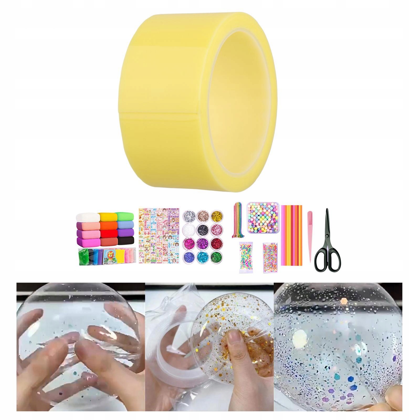 Blow Bubbles Double -Sided лента для детей DIY Craft Class Class -Made Ball 1 Roller с полными инструментами желтый
