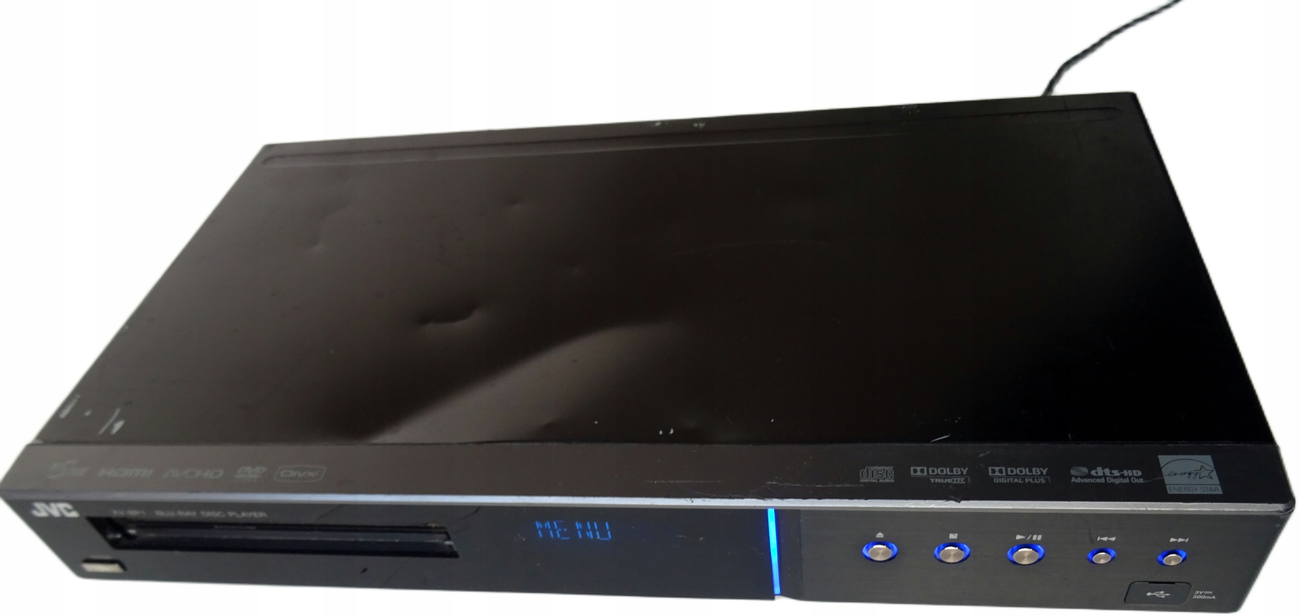 Предлагаю на продажу проигрыватель JVC Blu-ray, DVD и CD модели XV-BP1E. Аппарат технически работоспособен, но имеет существенные косметические дефекты и недостатки в комплектации, которые подробно и честно описаны ниже. Это предложение для человека, ищущего дешевый работающий плеер, которого не беспокоят проблемы со зрением и работой с передней панели.