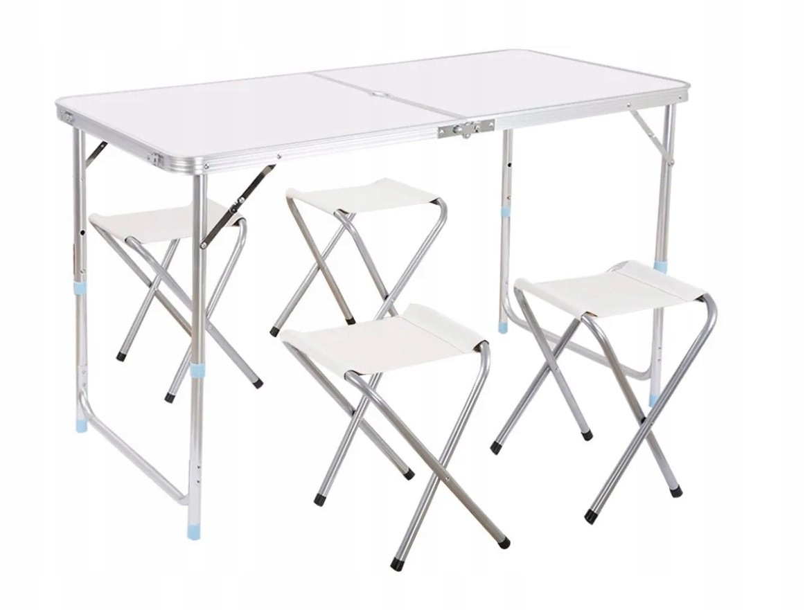 План Идеальный отпуск с нашим набором кемпинга, который содержит четыре складных стулья и один стол с возможностью регулировки высоты. Этот набор будет идеальным во время поездок, кемпинга, а также дома на террасе или в саду.
