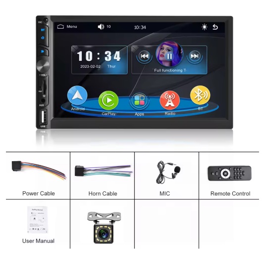 - 【Double Din Bluetooth 5.0 и FM Radio】 Оставайтесь на связи со встроенным -в Bluetooth, Aux, TF Socket и USB -портах. Этот двойной стерео DIN DIN DIN DIN DIN DIN поддерживает различные мультимедийные форматы, что делает их универсальным выбором для аудио -приемников. Эта беспроводная стерео -двойная система Din CarPlay с камерой реверсий обеспечивает изображение с высоким разрешением и легкую навигацию. Необходимо для каждой стереосистемы CarPlay.