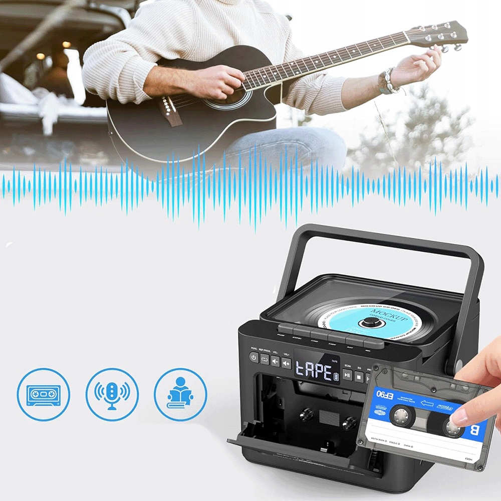 Ваша портативная музыкальная станция для компакт-дисков, кассет, радио, USB и многого другого! Идеально подходит для дома, путешествий и в качестве подарка.