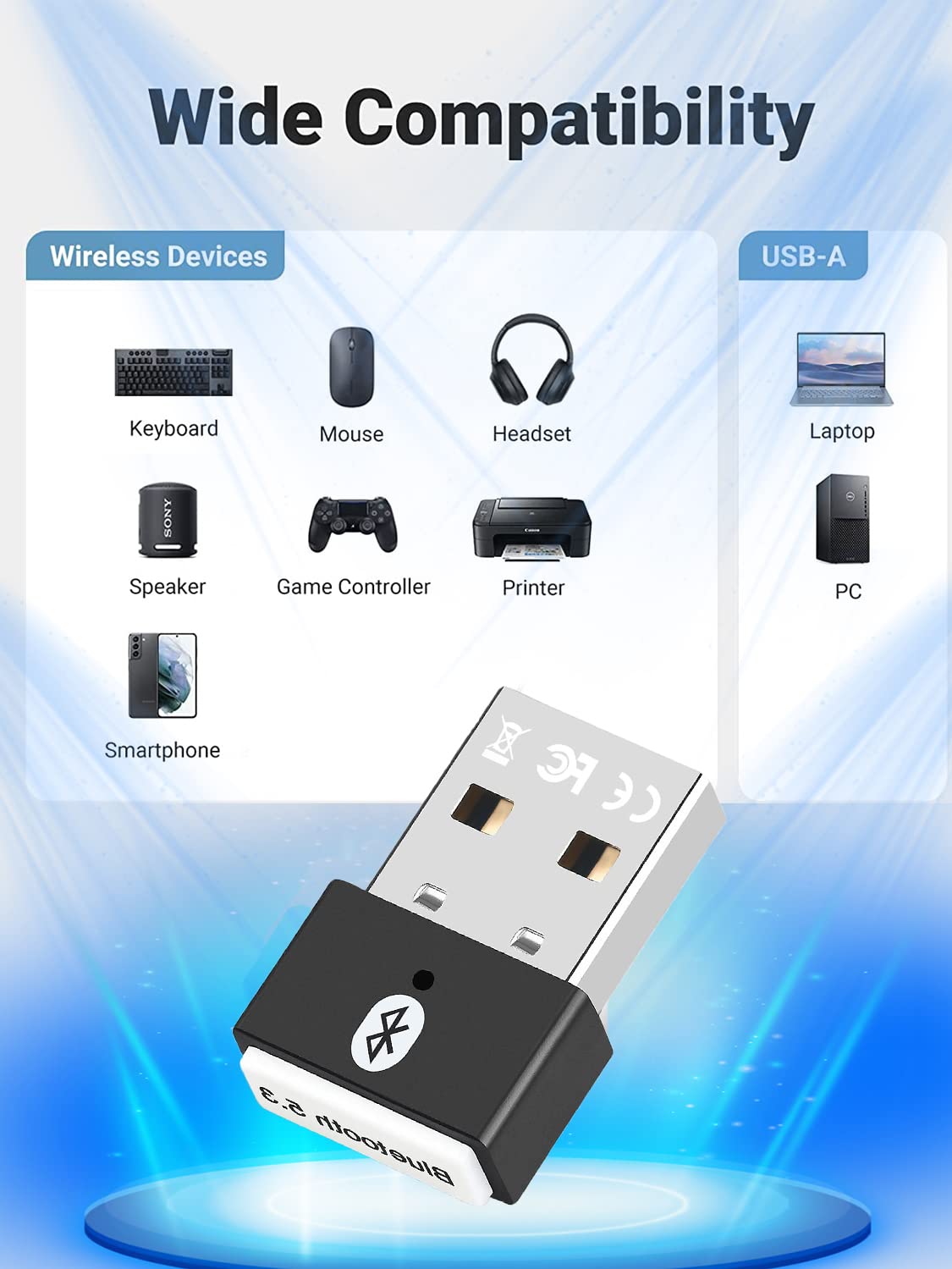 Bluetooth 5.3 Адаптер, USB Bluetooth -ключ 328 футов/100 м/с, 5,3 + edr