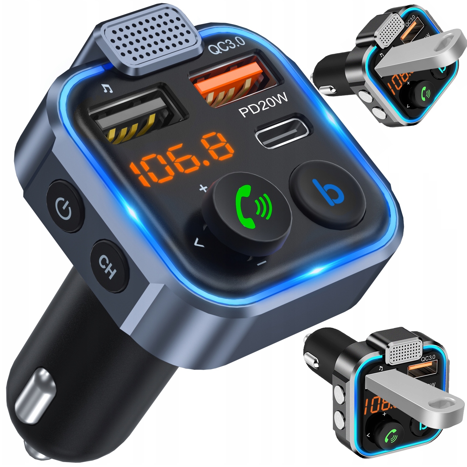 BLUETOOTH АУДІОПЕРЕДАВАЧ FM MP3 BT ШВИДКИЙ ЗАРЯДНИЙ ПРИСТРІЙ 3X USB QC 3.0 RGB