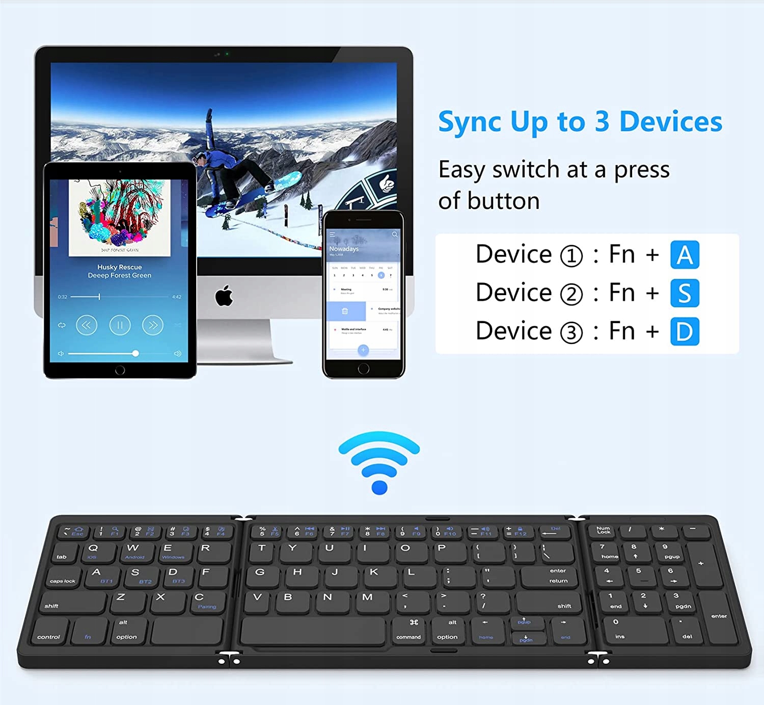 ✅1. Bluetooth 5.1: складывающая клавиатура создала -IN Bluetooth 5.1 для испарения до трех устройств с клавиатурой, так что вы можете переключаться между ними с одним щелчком, даже если вы используете разные операционные системы.