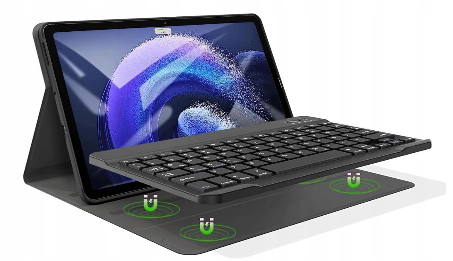 Клавиатура Bluetooth подключается к планшету по беспроводной сети. Он адаптирован к польским буквам, таким как ą,ć,ź,ń и другим.