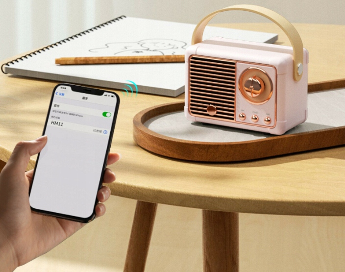 Портативная беспроводная колонка в стиле ретро.